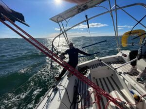 A découvert la voile avec Albert en 2021, achat d’un Elan 333, Aloha3 en 2022, partage d’expérience avec les chefs de bord de l’Amicale. C’est devenu une vrai passion, tant pour la navigation que pour l’amélioration du bateau.