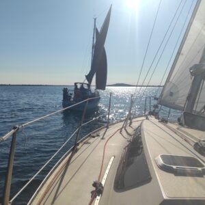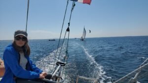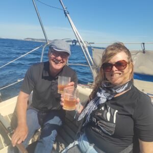 A découvert la voile avec Albert en 2018 . Navigation sur l’étang et croisières sur depuis 2010. Déjà son 2ème voilier et deux croisières côtières, l’une en famille et la deuxième en flottille avec l’amicale sur Gruissan.