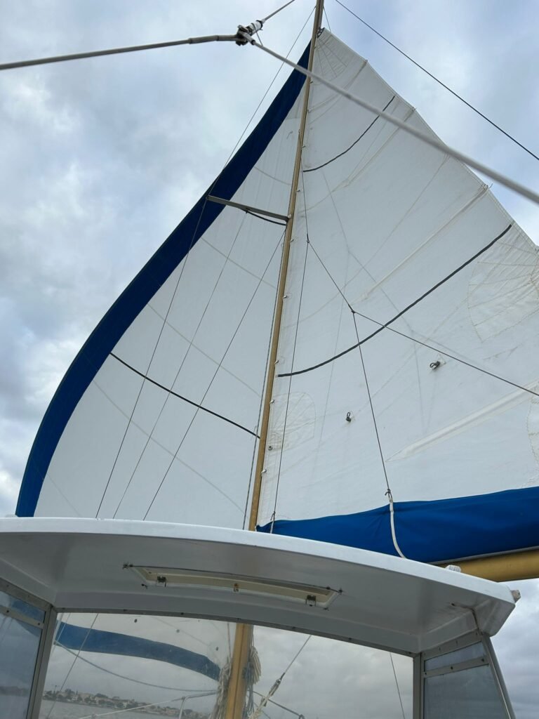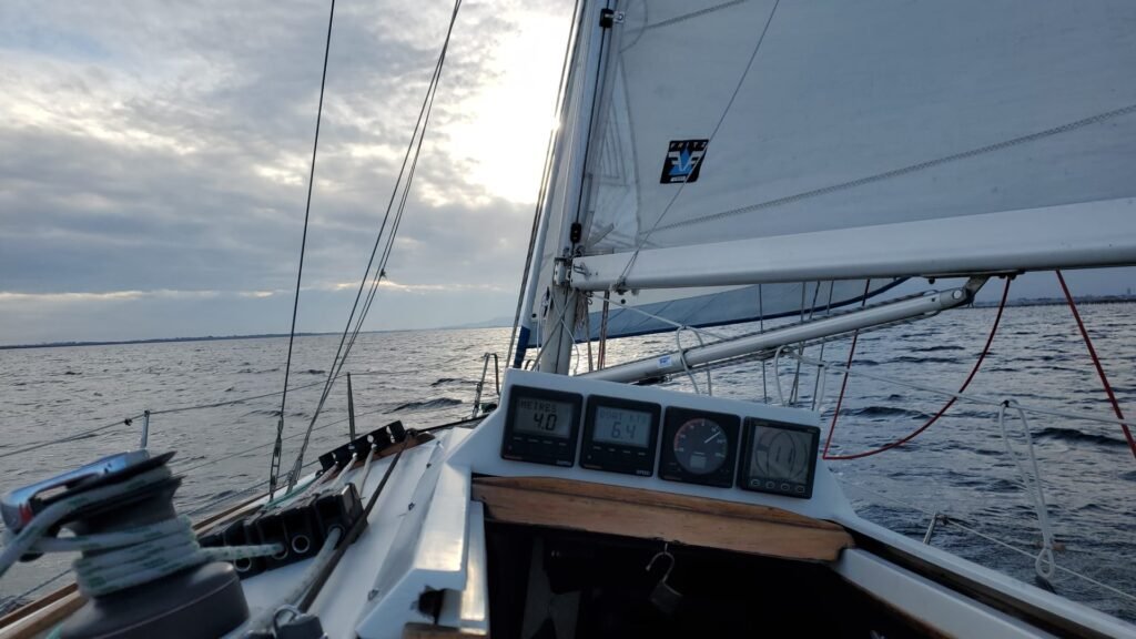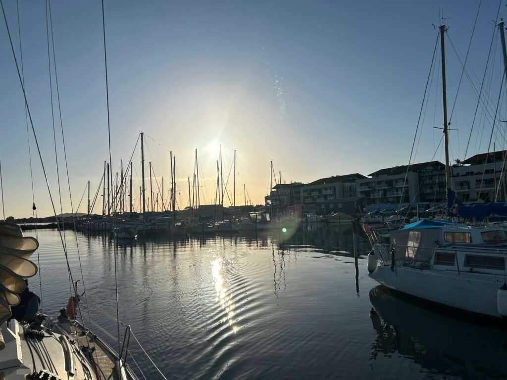L’été un 17 décembre, incroyable seul bémol la quasi absence de vent même si la vigie dans la mâture a eu du mal à deviner les risées et pourtant à chacune d’elles Azur sous GV et Génois a glissé en douceur au rythme d’un escargot de course. Que du plaisir avec Jacques d’aborder les souvenirs …