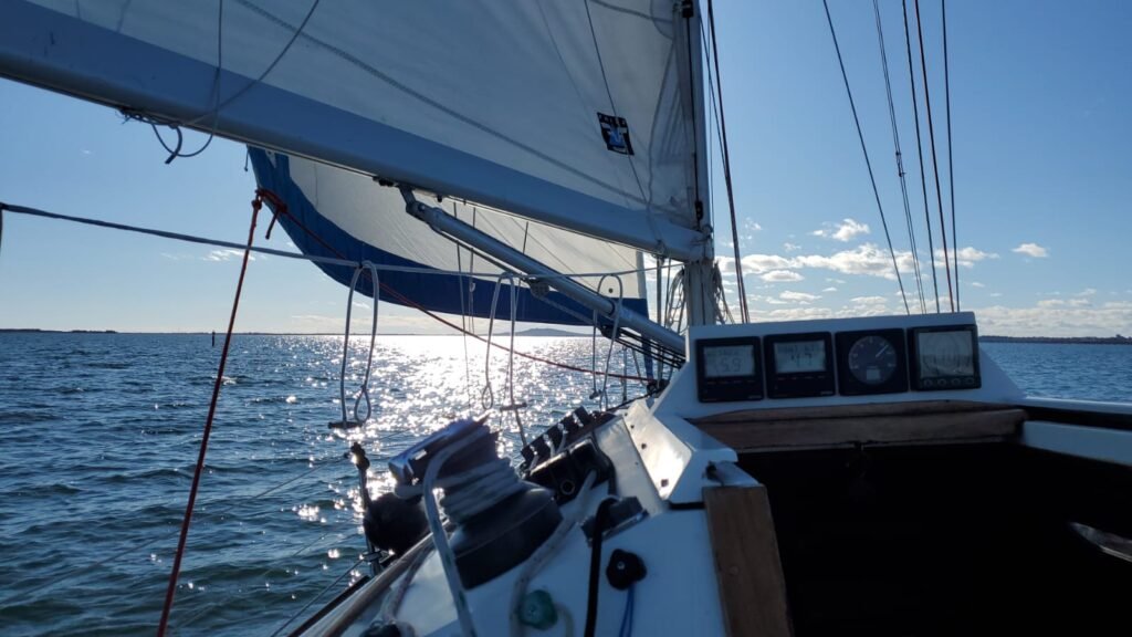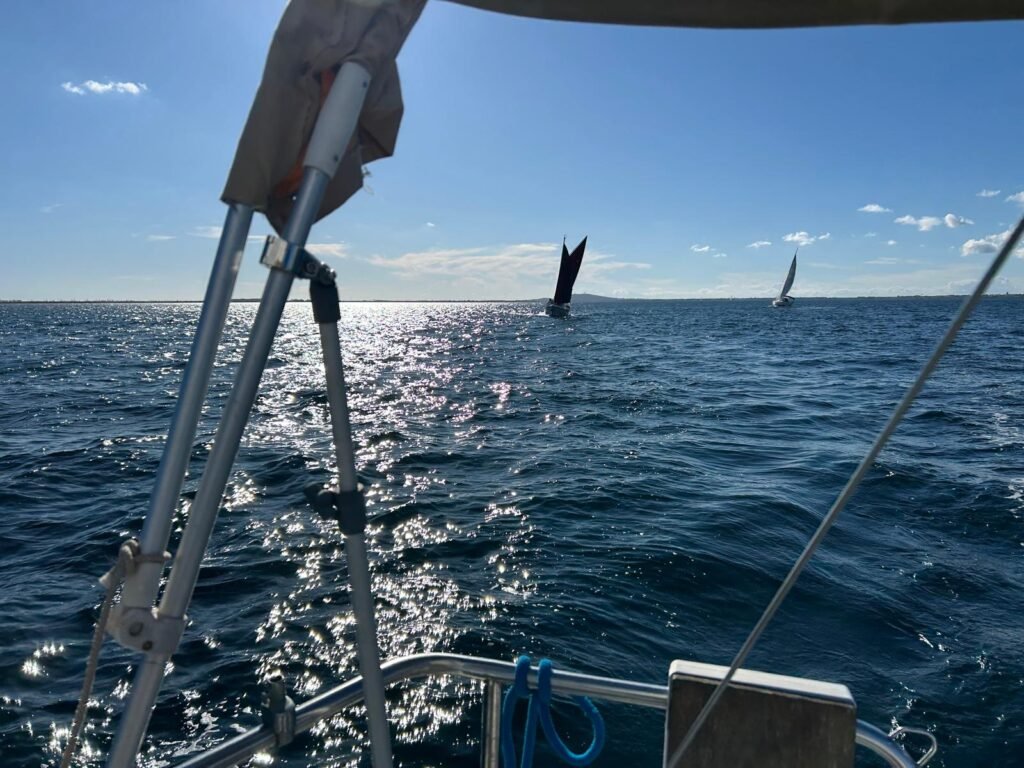 Après avoir essuyé quelques gouttes lors de la préparation des voiliers. Azur, P’tit Mousse et Ithaque larguent les amarres. Soudain un ciel bleu avec du soleil ☀️. Les trois unités côte à côte avec un vent du Nord jusqu’aux balises intermédiaires. Sur le retour le vent passe à l’ouest avant de mollir. Juste assez pour …