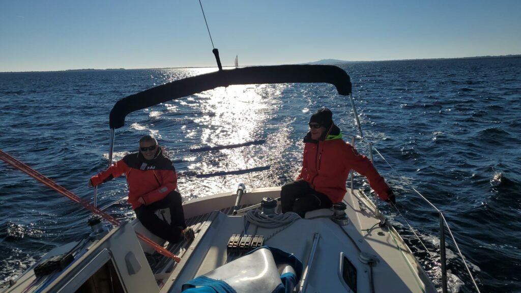Finir l’année en famille et amis que demander de plus ??? Azur et son équipage a pris plaisir à découvrir et faire découvrir les manœuvres sous spi en profitant d’une brise légère facilitant même un empannage quelque peu laborieux ! Belle ambiance à bord et déjà des prévisions de sorties en mer au printemps ? …