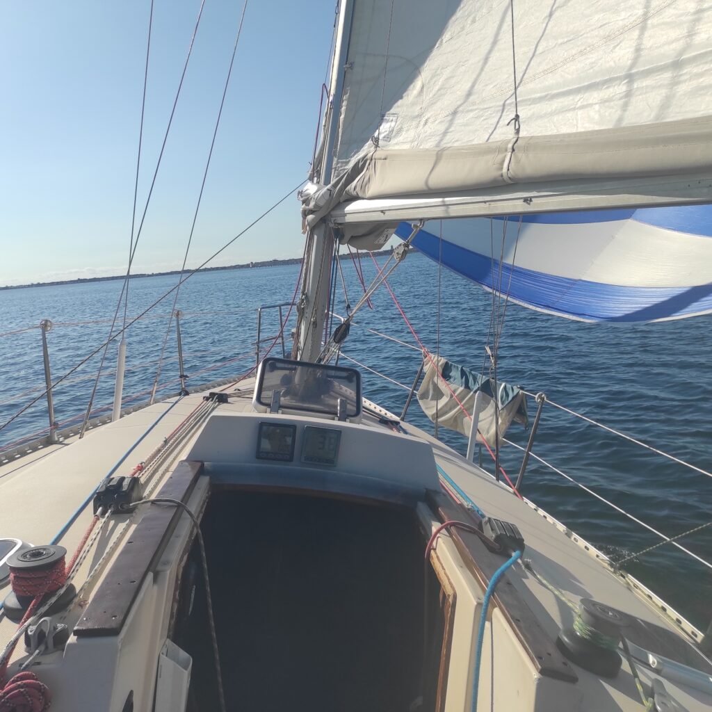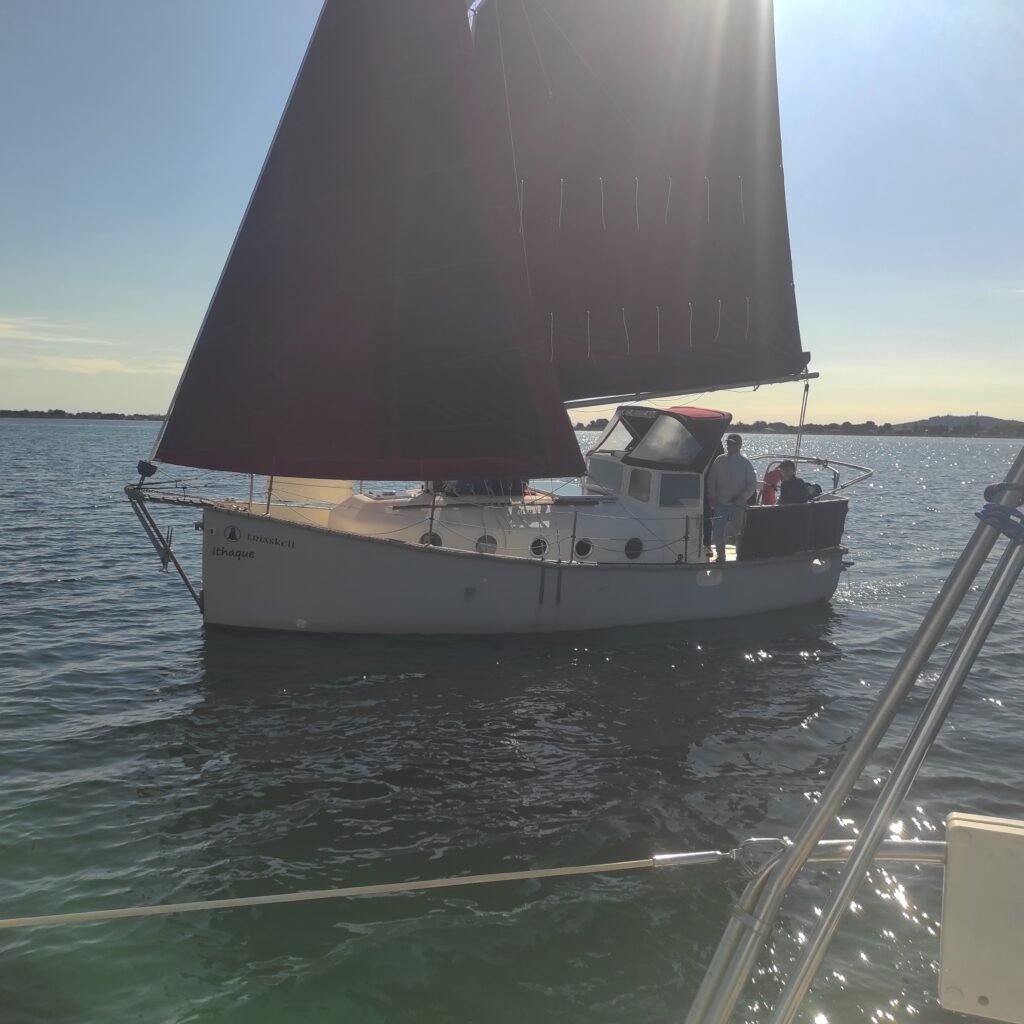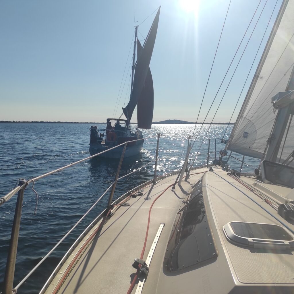 Sortie en solo pour Thicar une belle journée direction Listel et préparation du spi . Le retour sous spi est très serré mais un réel plaisir. Ithaque profitait également de cette belle journée.