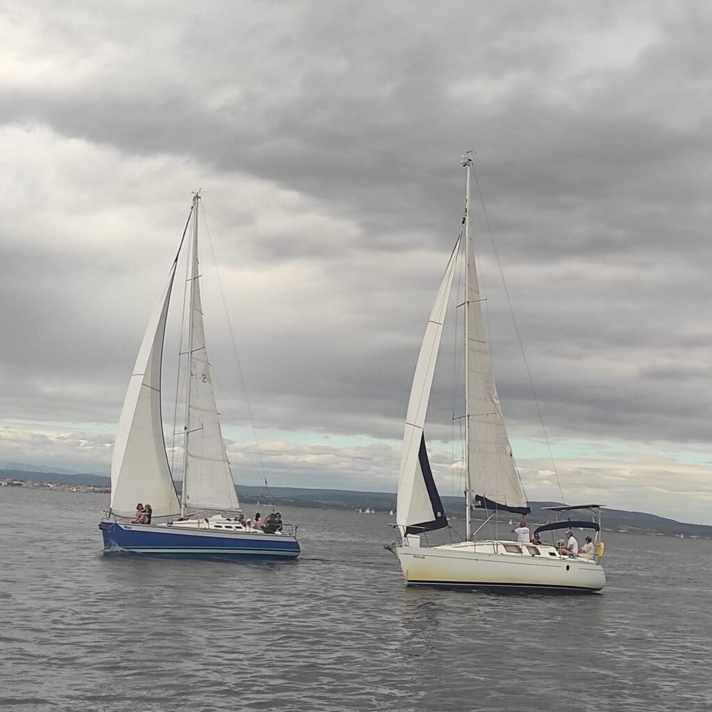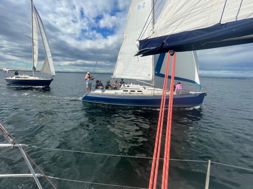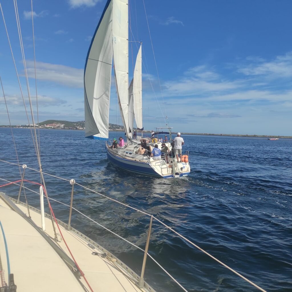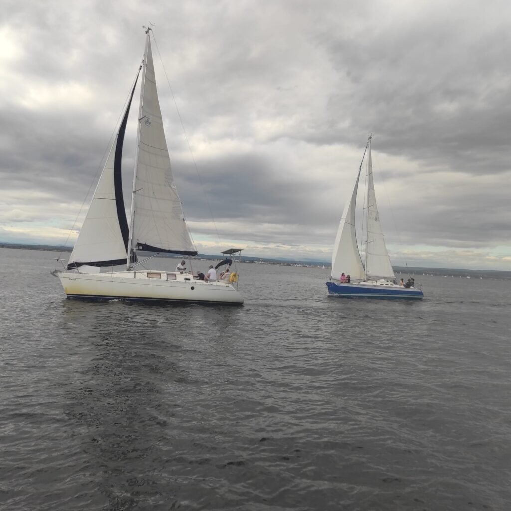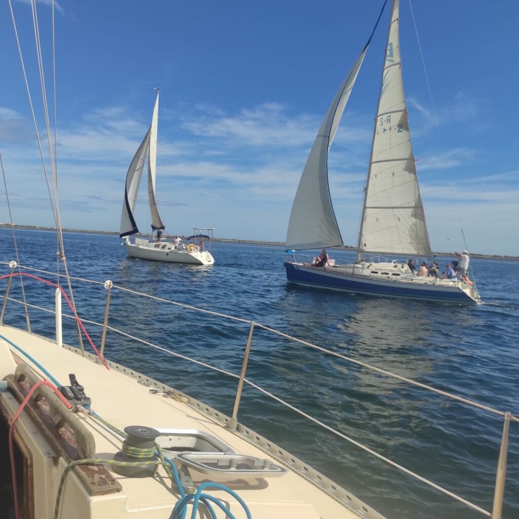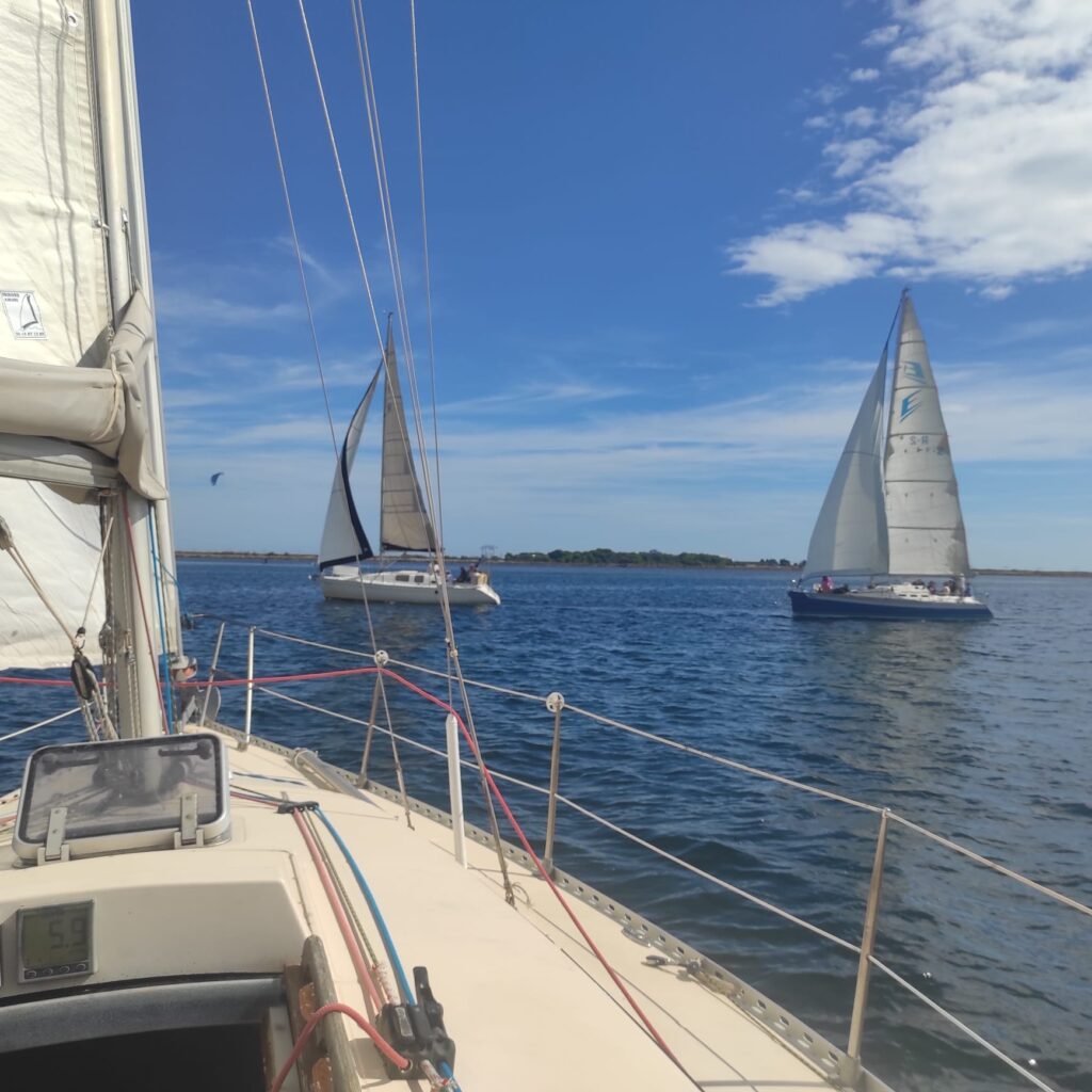 Et oui quatre voiliers de L’Amicale sur la Lagune qui prendront plaisir à se retrouver. Sur Azur l’équipage en découverte pour certaines, barre, virements et réglages, routes au prés, travers et largue pour terminer par le bain tracté ! Un équipage très volontaire que nous retrouverons sur les voiliers de l’Amicale, c’est certain ! Le verre amical sera bien évidemment partagé pour clôturer cette super sortie.