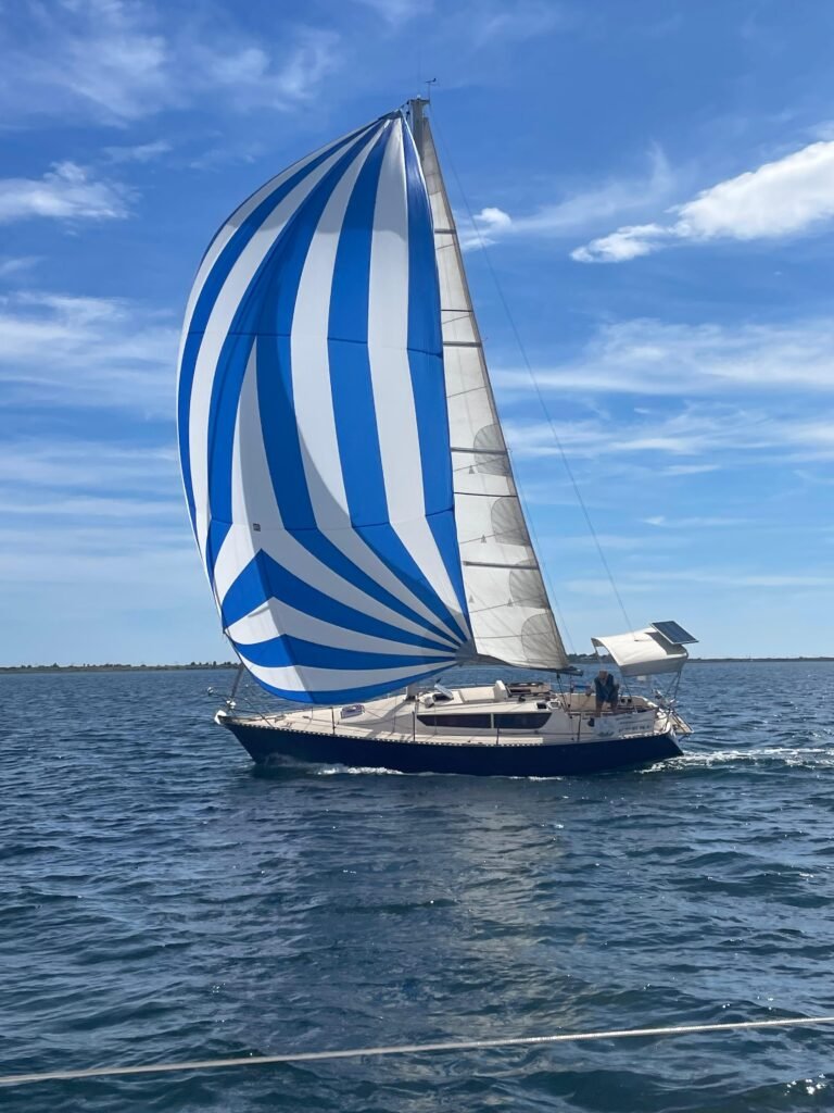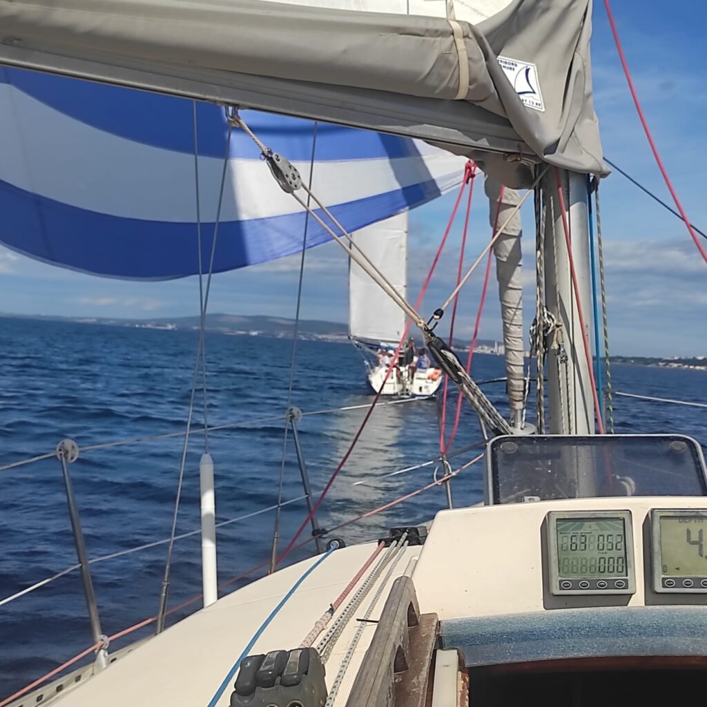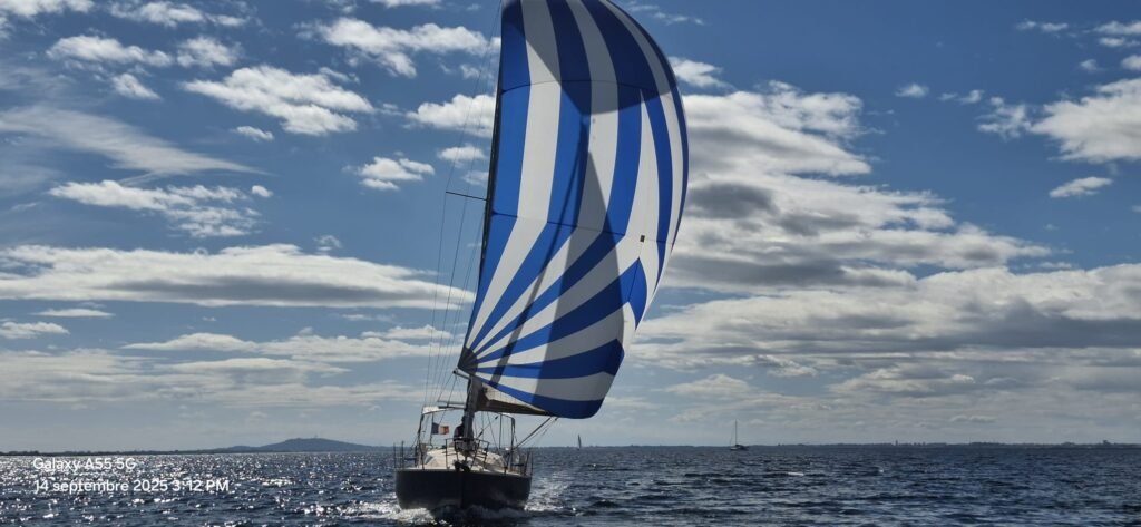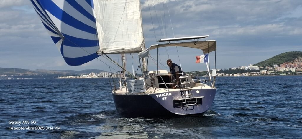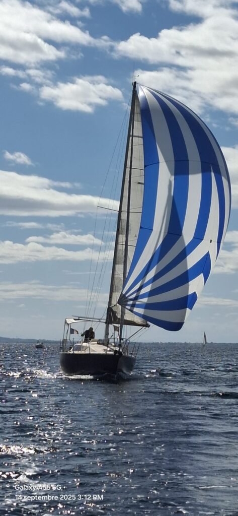 Sortie en solitaire pour Thicar qui se fera un plaisir de naviguer sous spi et de retrouver les bateaux de l’Amicale Azur, Yémanjà, Ptit mousse. Une très belle journée mais il est temps de rentrer.