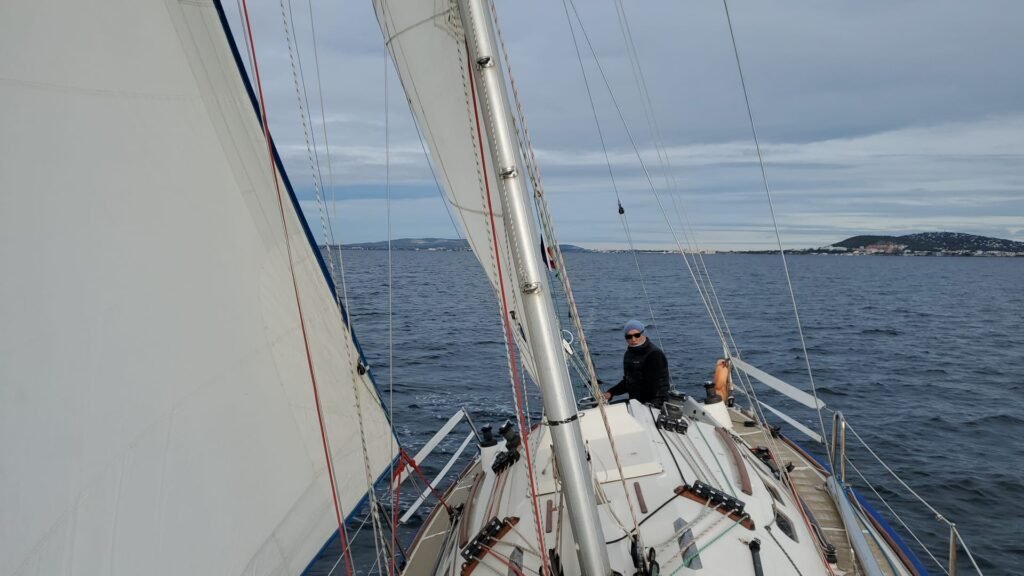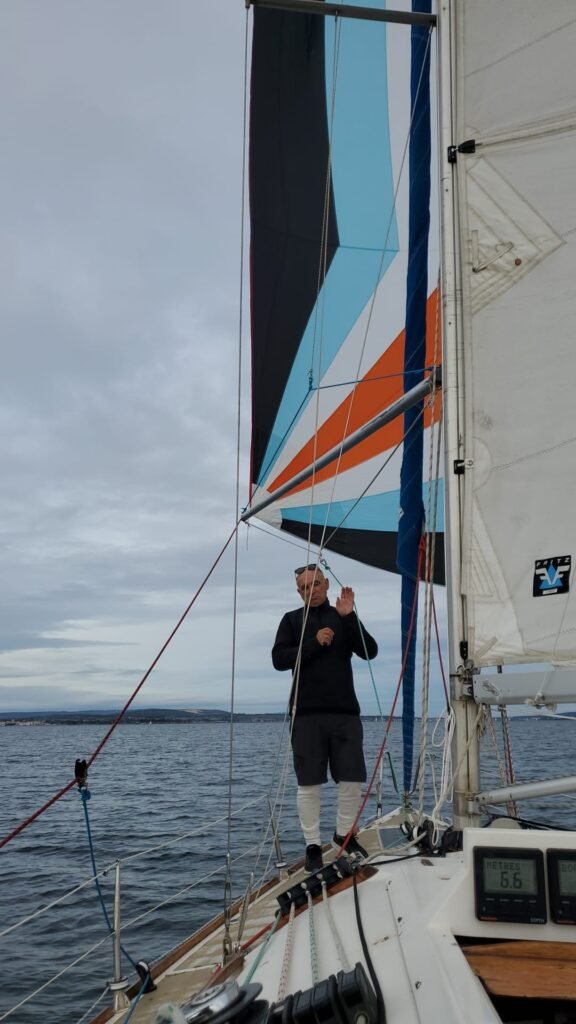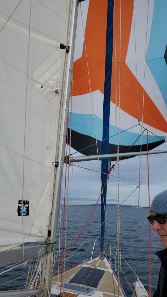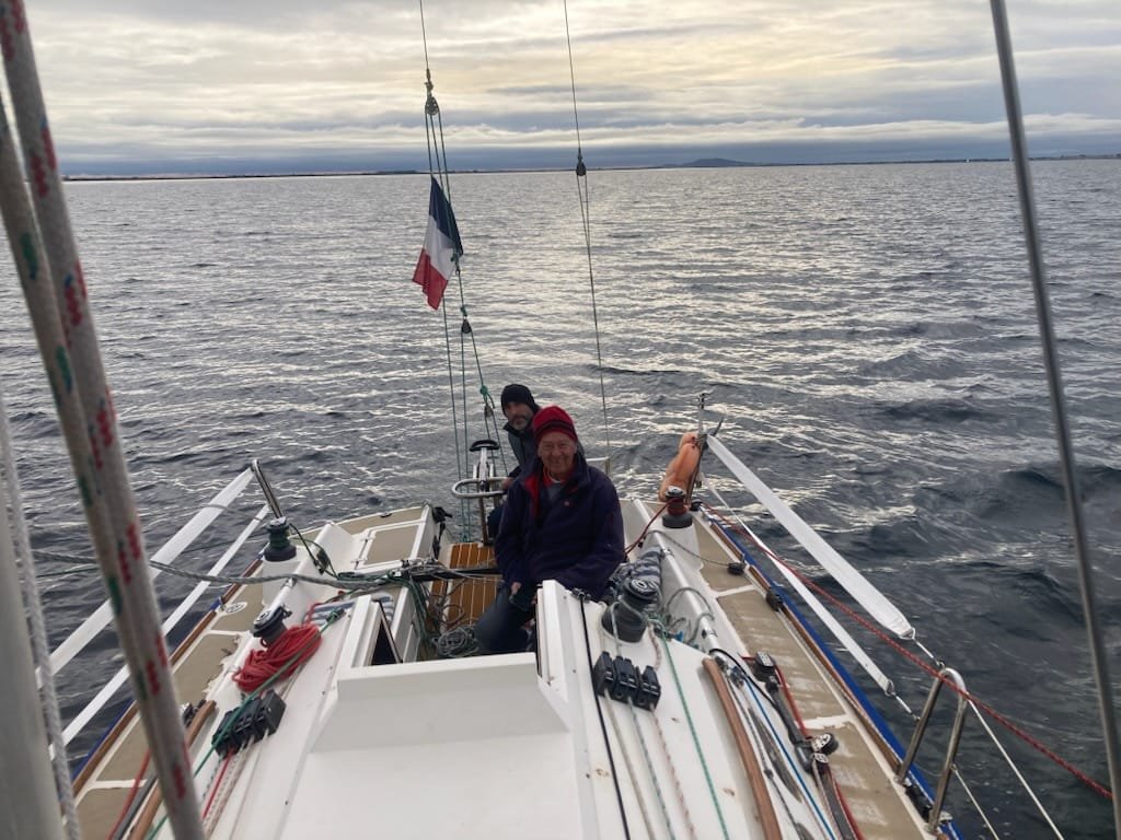 L’équipage d’Azur largue les amarres pour hisser le spi dira notre chef de bord de Timendel, Serge ! Obéissant aux ordres le temps étant idéal 6/9nds Azur nous amènera vers Mèze, un bord tangon sur tribord, empannage et route tangon bâbord. En approche de Mèze Il est tant d’affaler virer et d’engager le retour au louvoyage sur Marseillan tout en bénéficiant d’une pluie fine…. Une sortie voile très appréciée comme la citronnade chaude ou le vin blanc! Merci à l’équipage.