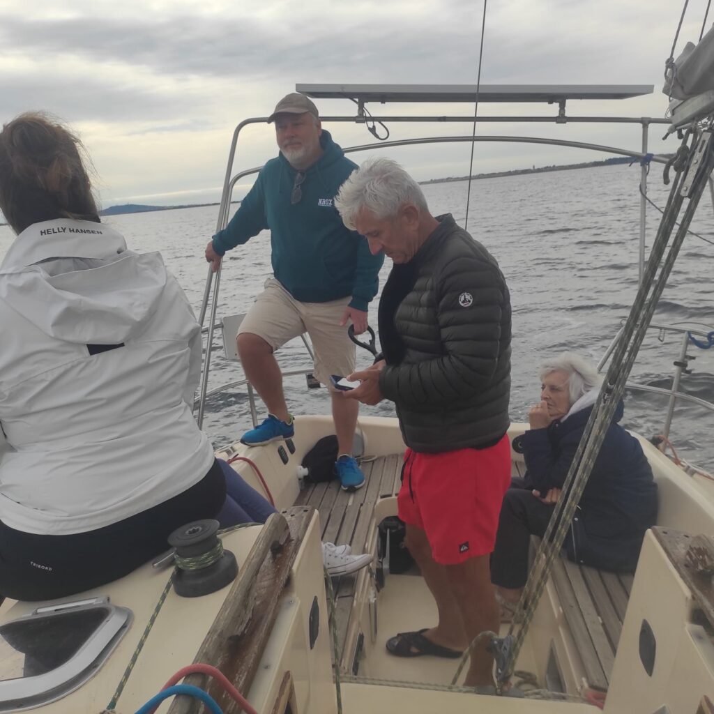 Un peu de grisaille un peu de soleil,un peu de vent,trois ingrédients suffisent pour passer un bel après-midi. J’allais oublier un équipage très sympathique qui profitera de voir l’envoi du spi pour une navigation très agréable. Des idées de croisière en perspective mais d’abord le verre de l’amitié pour clôturer la journée.