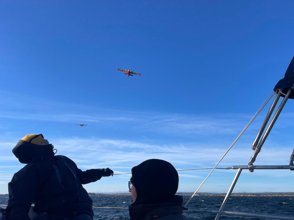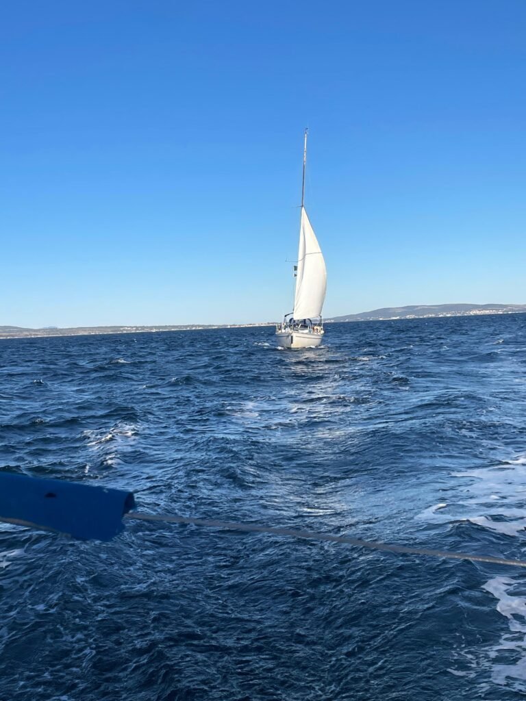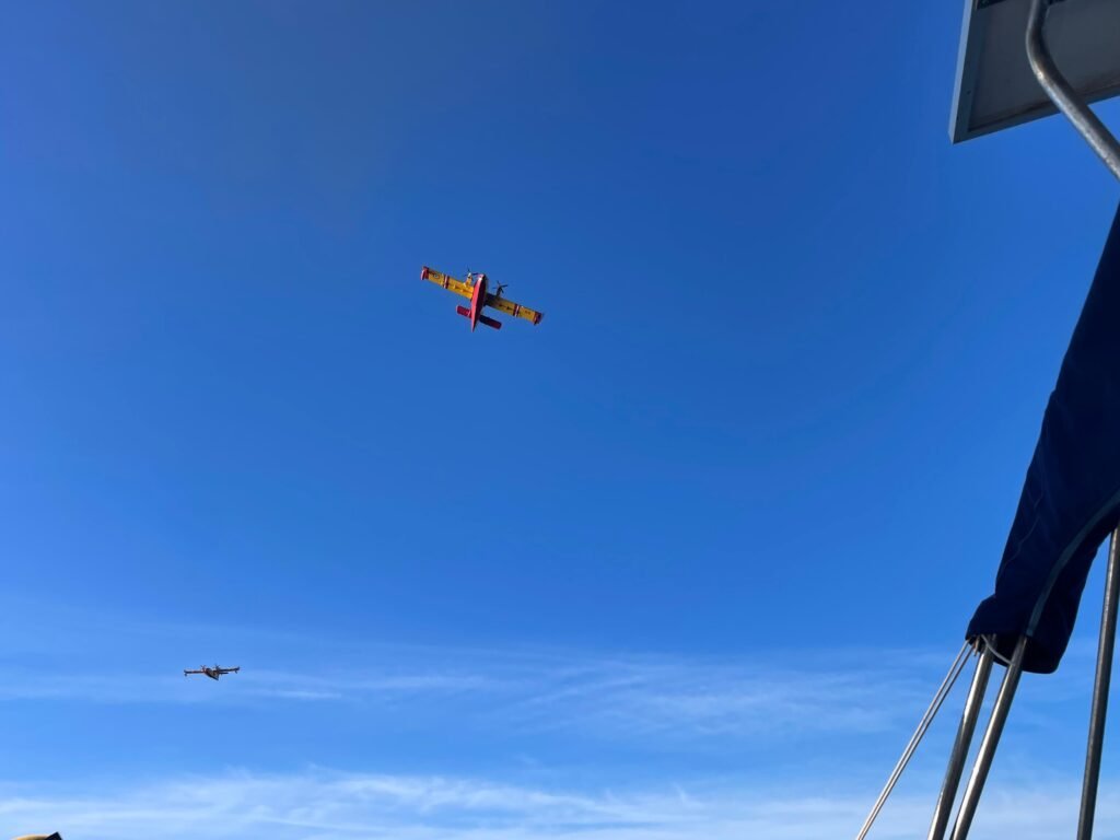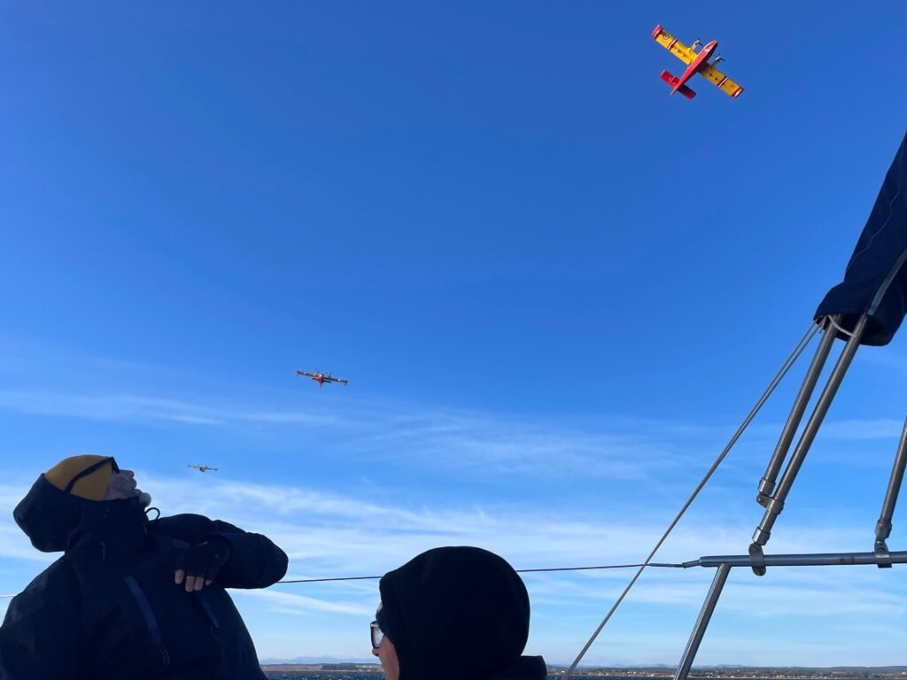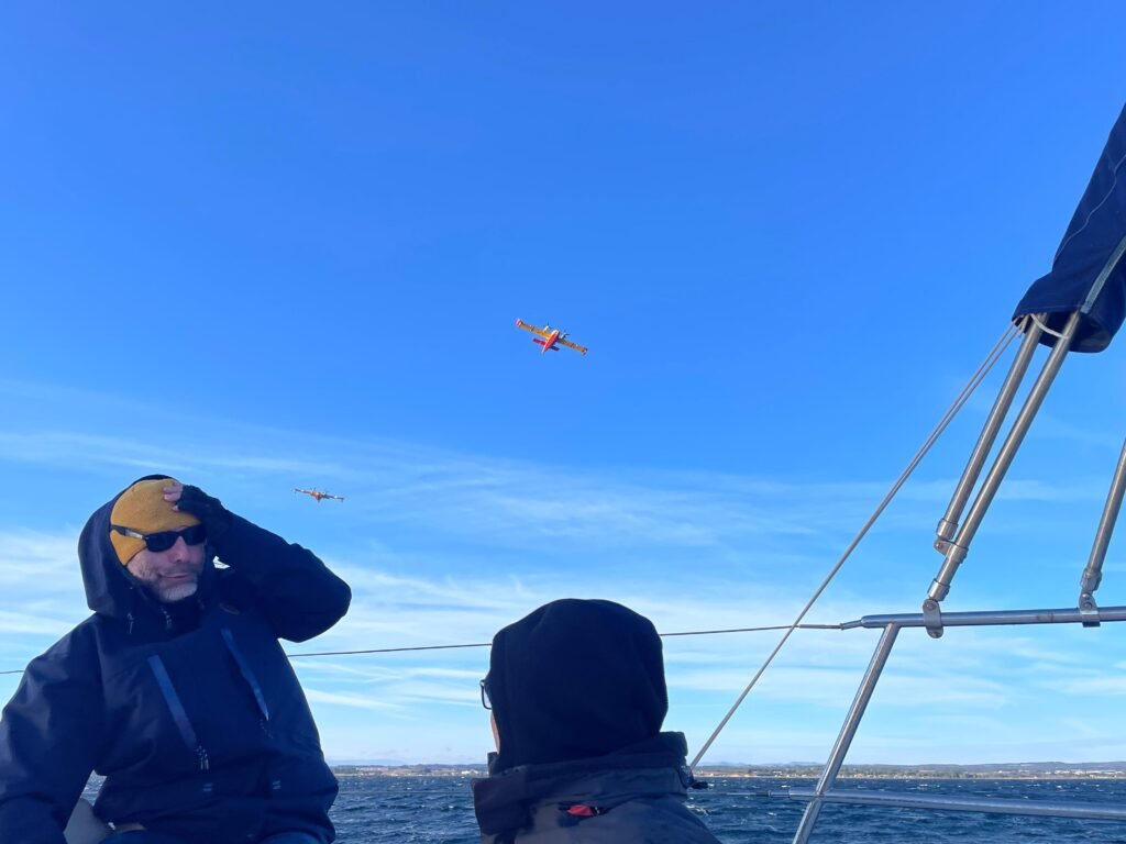 Yémanjà de sortie, vent de NNW 14 à 24 nds pour une virée au delà de Mèze, GV 2ris et Génois réduit. Les bateaux se comptent sur les doigts de la main en cet après-midi, presque plus de Canadair en exercice que d’objets flottants. Toujours un plaisir de les voir évoluer au dessus de nos têtes…tant qu’ils ne larguent pas leurs 6000 litres d’eau dans notre cockpit ! 😁