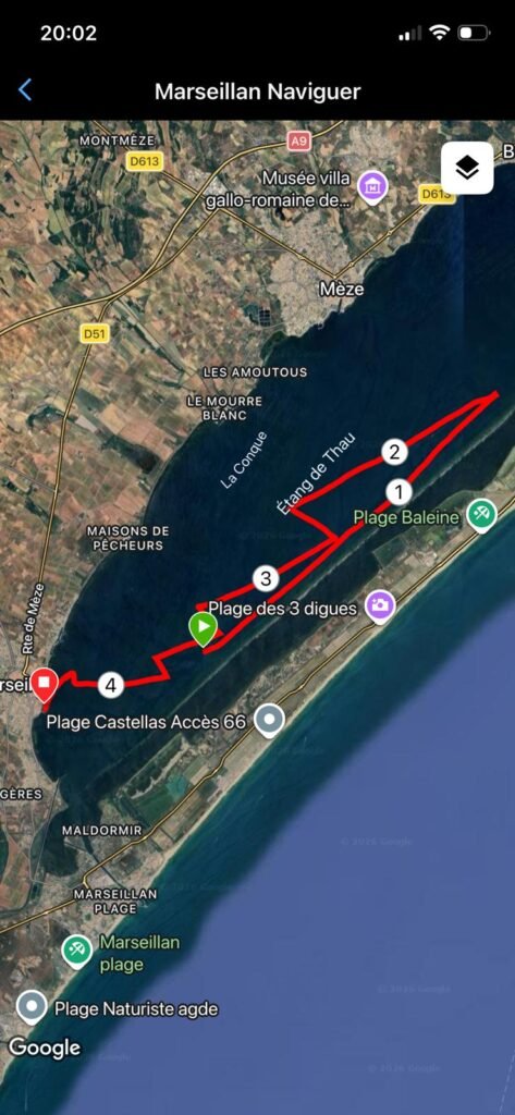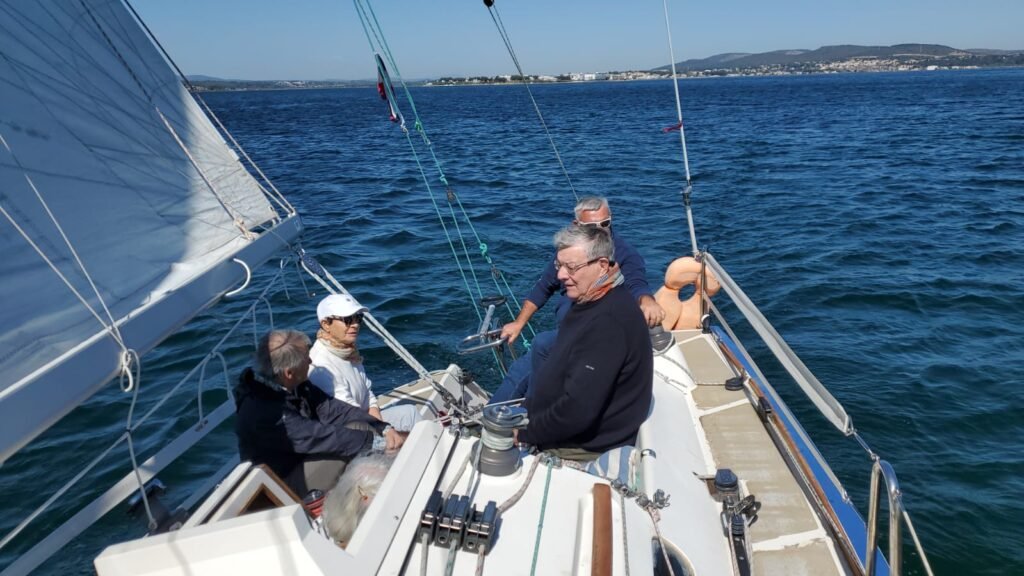 Notre équipier tout temps était lui aussi de la sortie pour un aller direct sur Sète et retour au louvoyage en raison de la bascule SE puis S et SW en arrivant au port. Le verre amical clôturera cette belle sortie Voile.