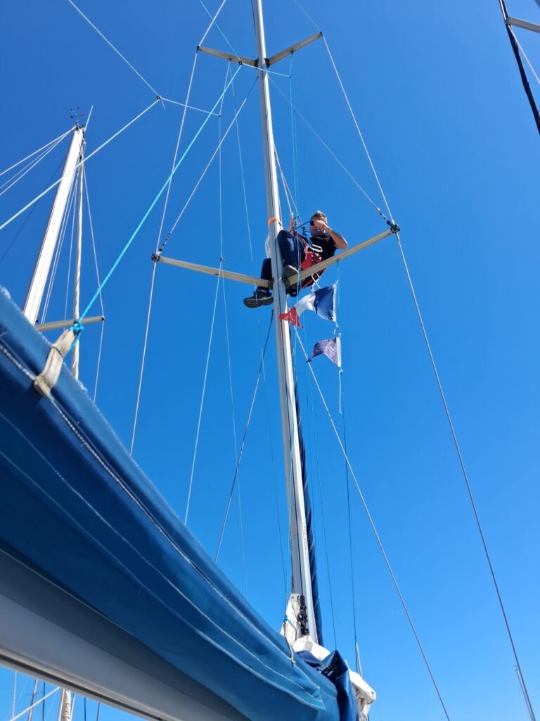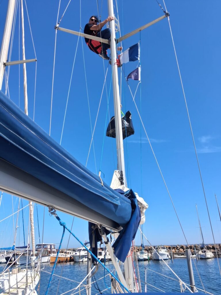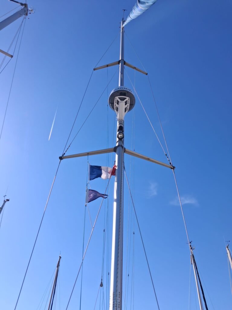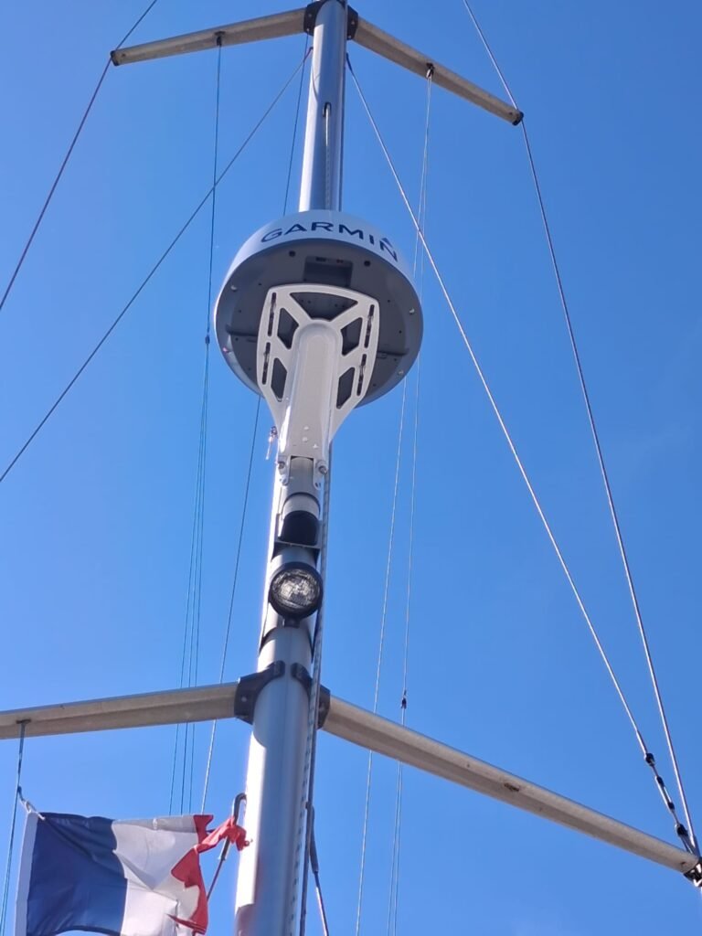 Aujourd’hui, deux exploits ont été réalisés sur Aloha3 : 1 merci à Jacques d’être monté au mat installer le support et le radar . 2 un mec de la CGC a réussi à faire bosser un mec de la CGT ! 🙂 encore merci Jacques 👍