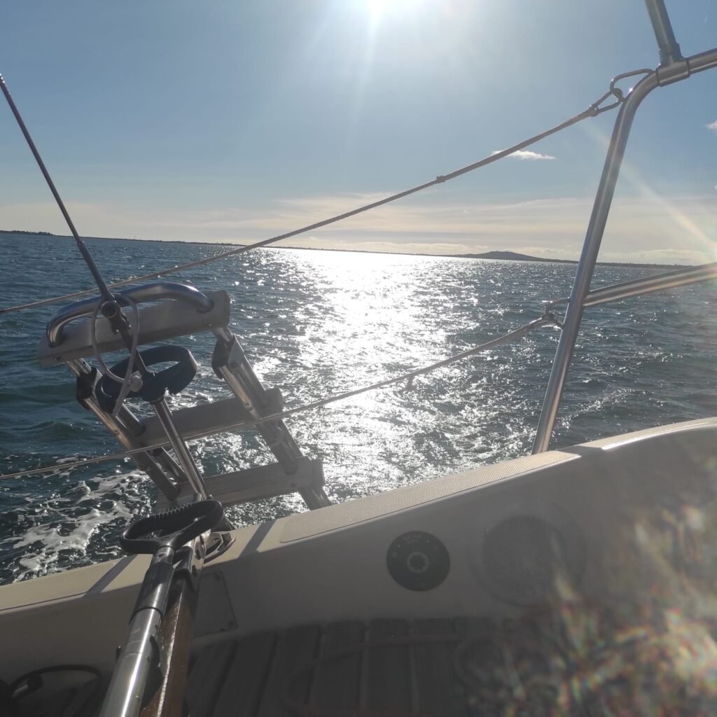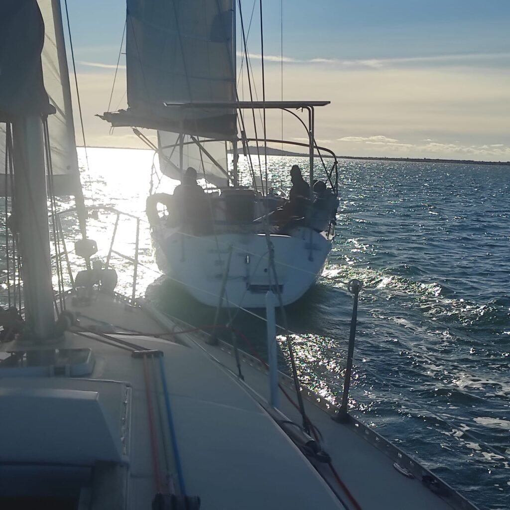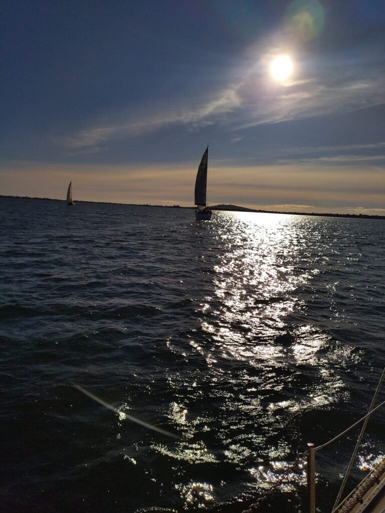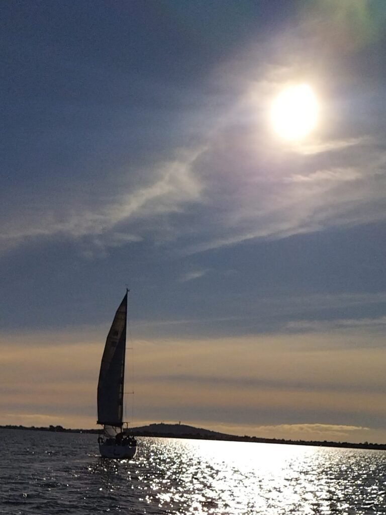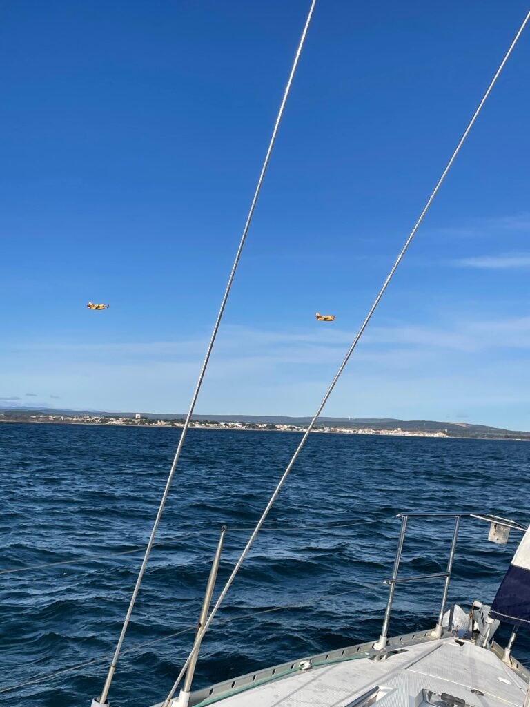 Vent 10 à 20nds de NNW après-midi ensoleillée – Enfin une journée sans pluie, ce sera l’occasion pour les bateaux de l’Amicale de prendre l’air. Les uns en équipage les autres en solitaire et que du plaisir pour tout le monde. L’objectif pour Thicar, Ithaque, Yémanjà et Ptit Mousse étant de sécher la voilure et d’éventuellement tester les pilotes et les VHF. C’est un ballet de deux Canadairs qui viendront faire le spectacle à cette flottille avant la rentrée au port. Boisson chaude à l’arrivée bien sûr !…☕️