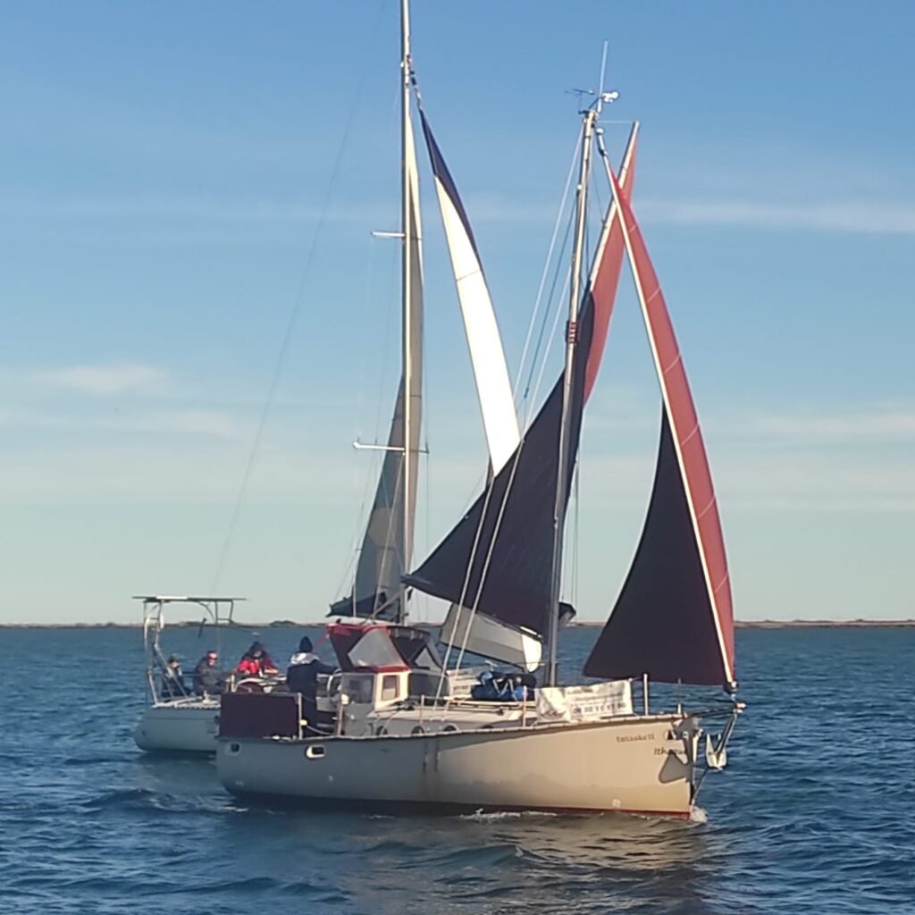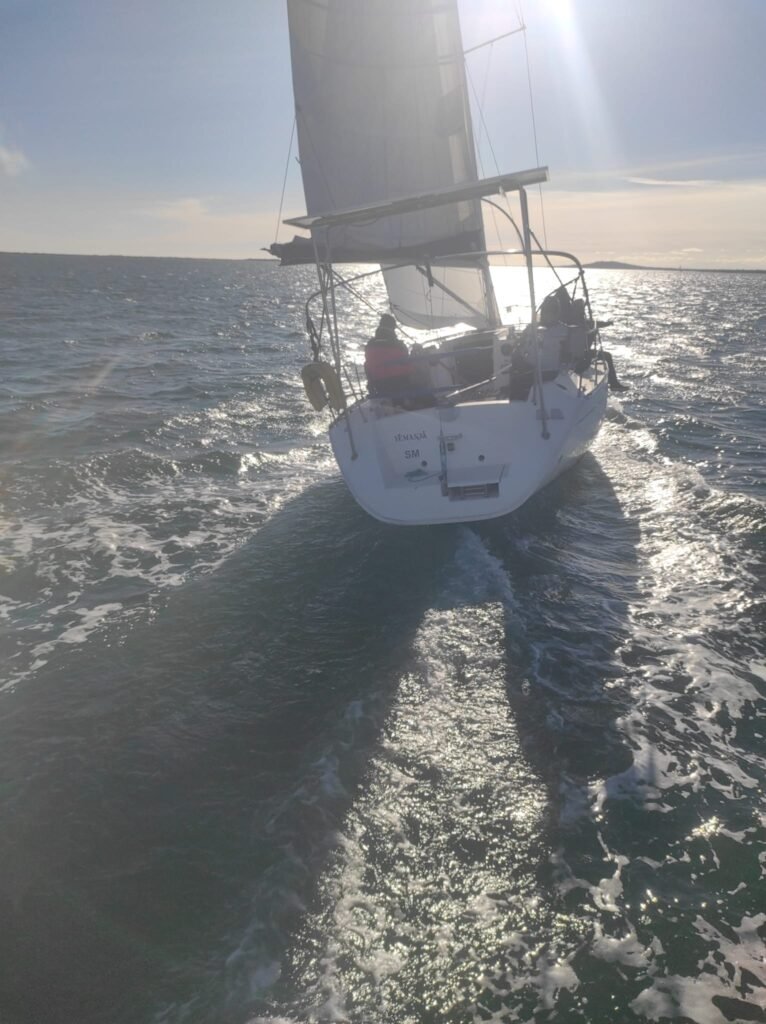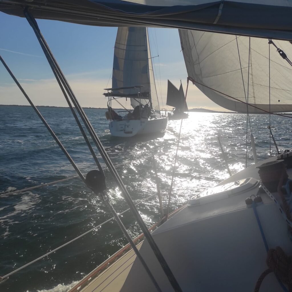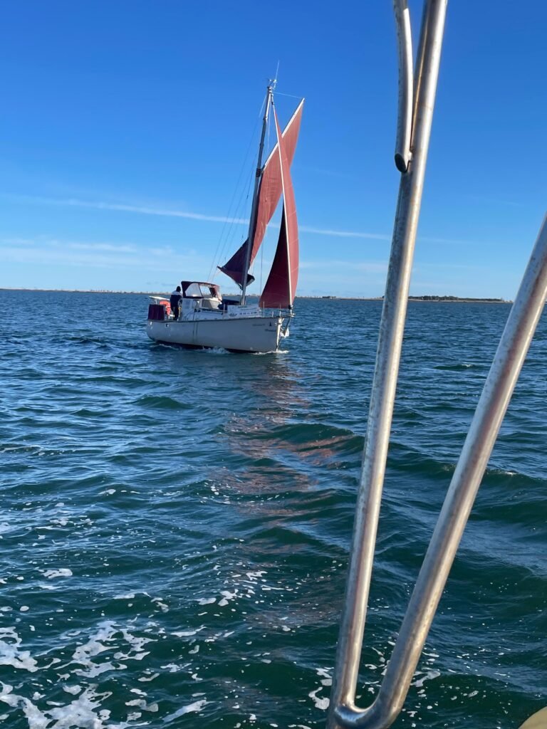 Vent 10 à 20nds de NNW après-midi ensoleillée – Enfin une journée sans pluie, ce sera l’occasion pour les bateaux de l’Amicale de prendre l’air. Les uns en équipage les autres en solitaire et que du plaisir pour tout le monde. L’objectif pour Thicar, Ithaque, Yémanjà et Ptit Mousse étant de sécher la voilure et d’éventuellement tester les pilotes et les VHF. C’est un ballet de deux Canadairs qui viendront faire le spectacle à cette flottille avant la rentrée au port. Boisson chaude à l’arrivée bien sûr !…☕️