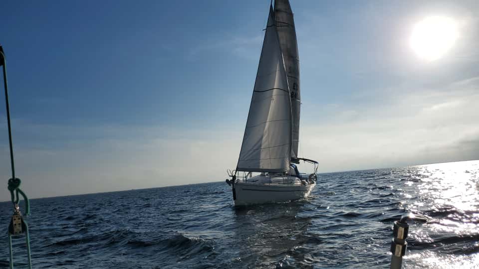 L’équipage d’Azur prendra du plaisir de naviguer avec un bon vent d’ENE DE 10.8nds à 14.6 nds conditions idéales pour rejoindre Mèze au louvoyage sous GV2 ris et génois réduit. Deux rencontres avec P’tit Mousse puis Aloha 3.