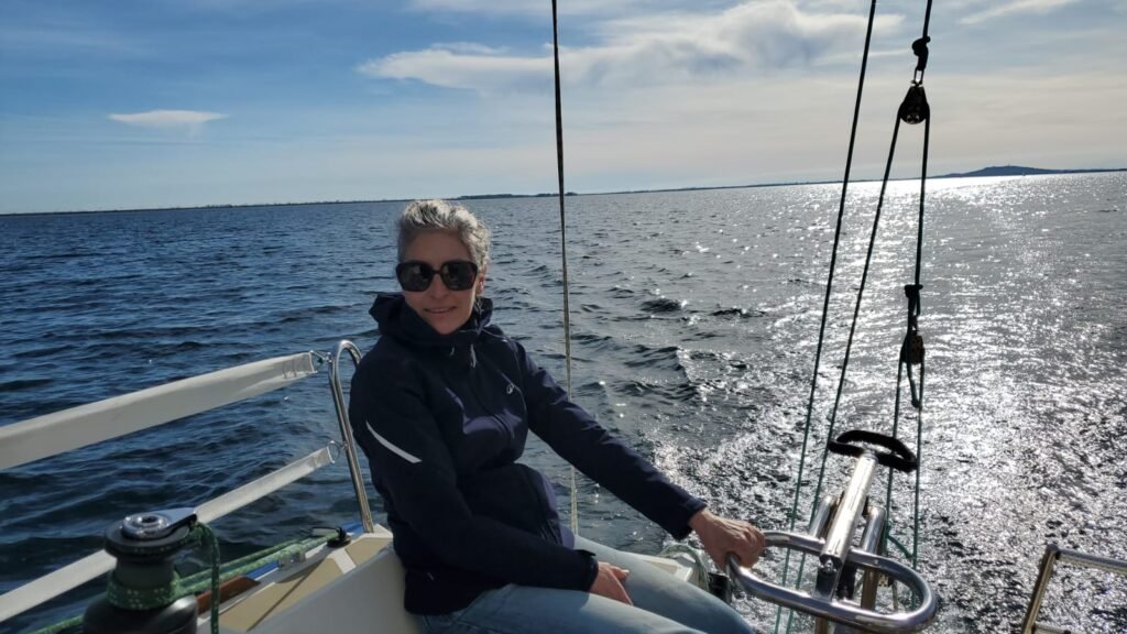 Du rêve à la réalité c’est fait! Les équipières d’Azur « décident » de naviguer sous spi. Temps idéal vers 14hrs S 7/8.5 nds pour envoyer et route sur Mèze avec une brise qui monte à 8/10 nds pour frôler les 7nds en vitesse avant d’affaler devant Mèze pour un retour au louvoyage avec une brise faiblissant à 6/7 nds de SSE. Des équipières qui souhaitent progresser, félicitations.