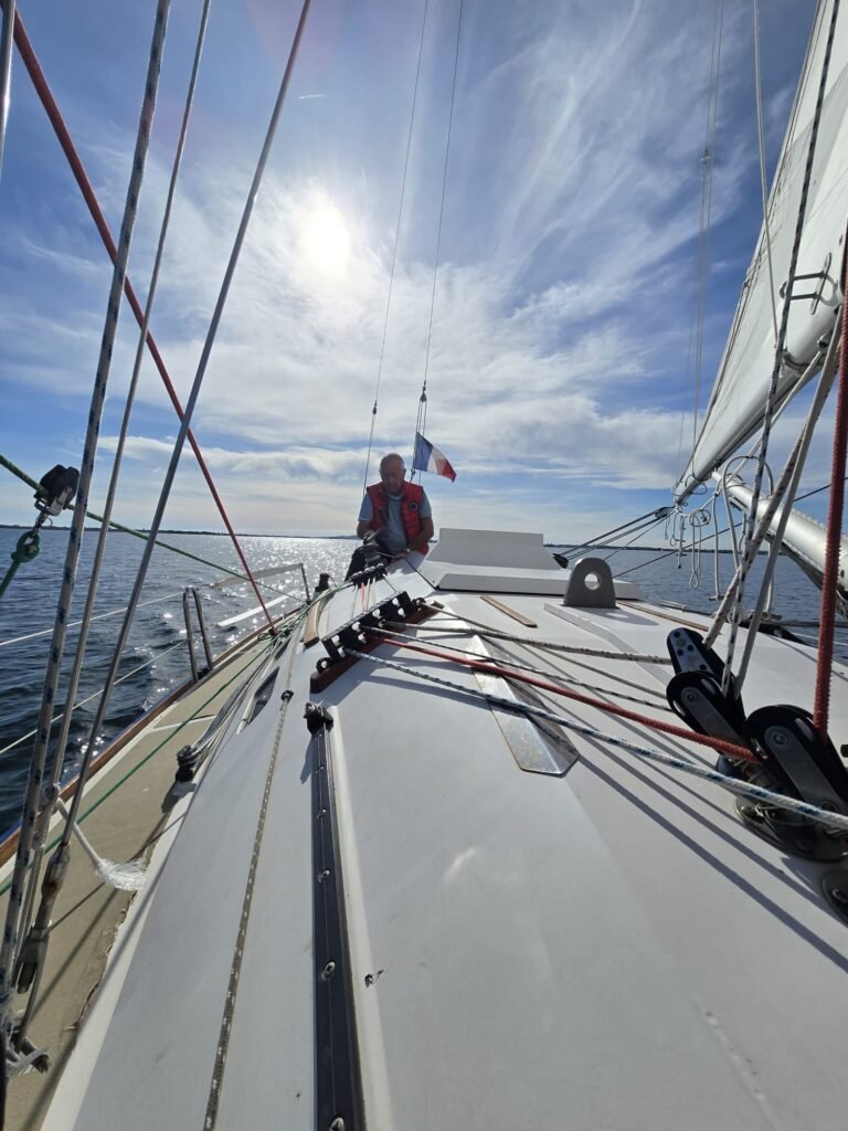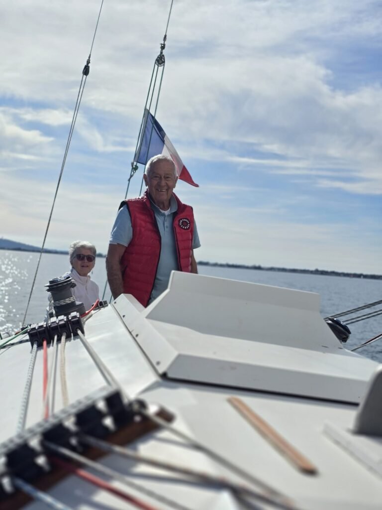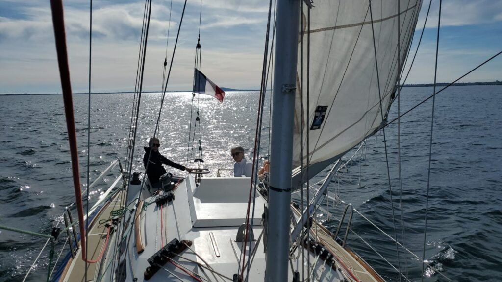 Commentaire du chef de bord d’Aloha3 qui était lui aussi sur l’eau : « Oui, Azur m’a mis 1kt avec son spi, j’ai abandonné la poursuite pour m’attaquer à un célèbre voilier de Meze, « Les ptits doudous » que je vois régulièrement sur l’AIS, une sorte de voilier de régate avec voiles grises , qui m’a toujours mis en difficulté, hé bien le métier rentre, je l’ai rattrapé au près jusqu’à Marseillan 🙂 »