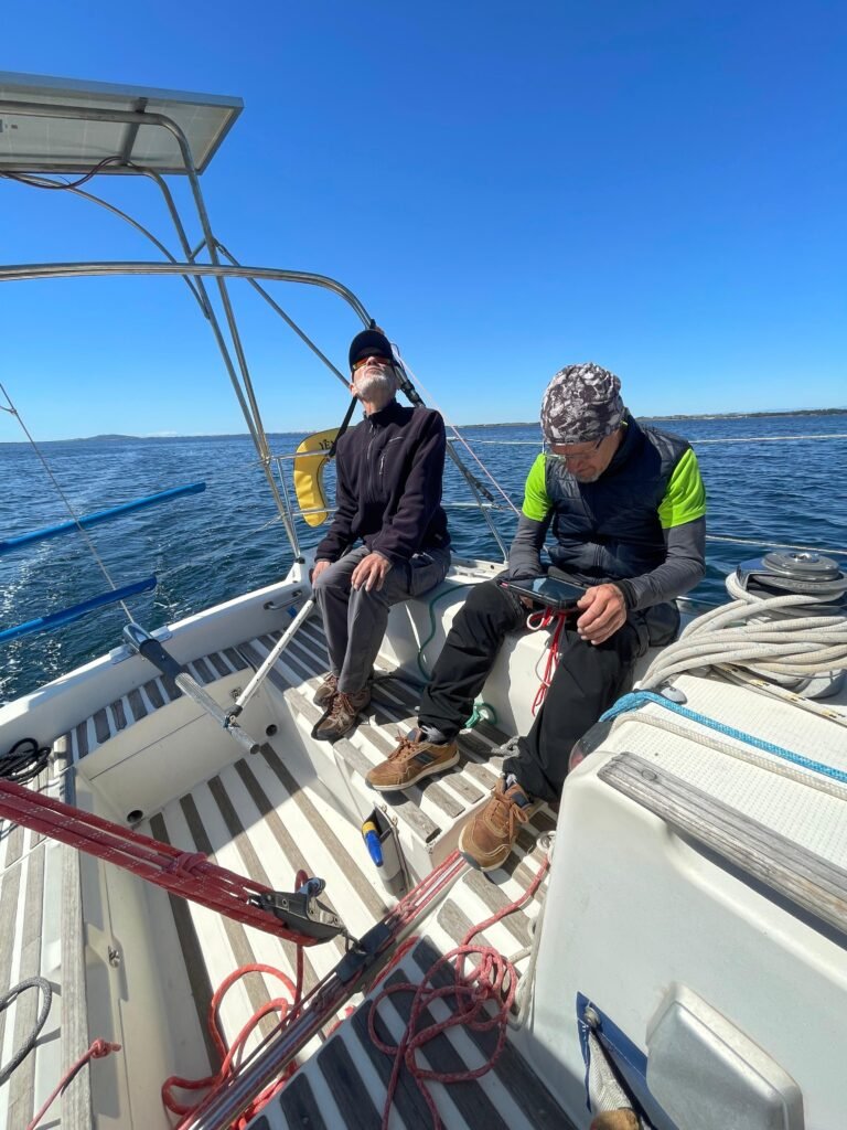 Petite après-midi avec un assidu de l’amicale qui a découvert la barre à roue d’Aloha3, et surtout Raoul le pilote auto, meilleur que nous 🙂 Petit vent sur l’étang, mais complètement ingérable devant Marseillan au retour.