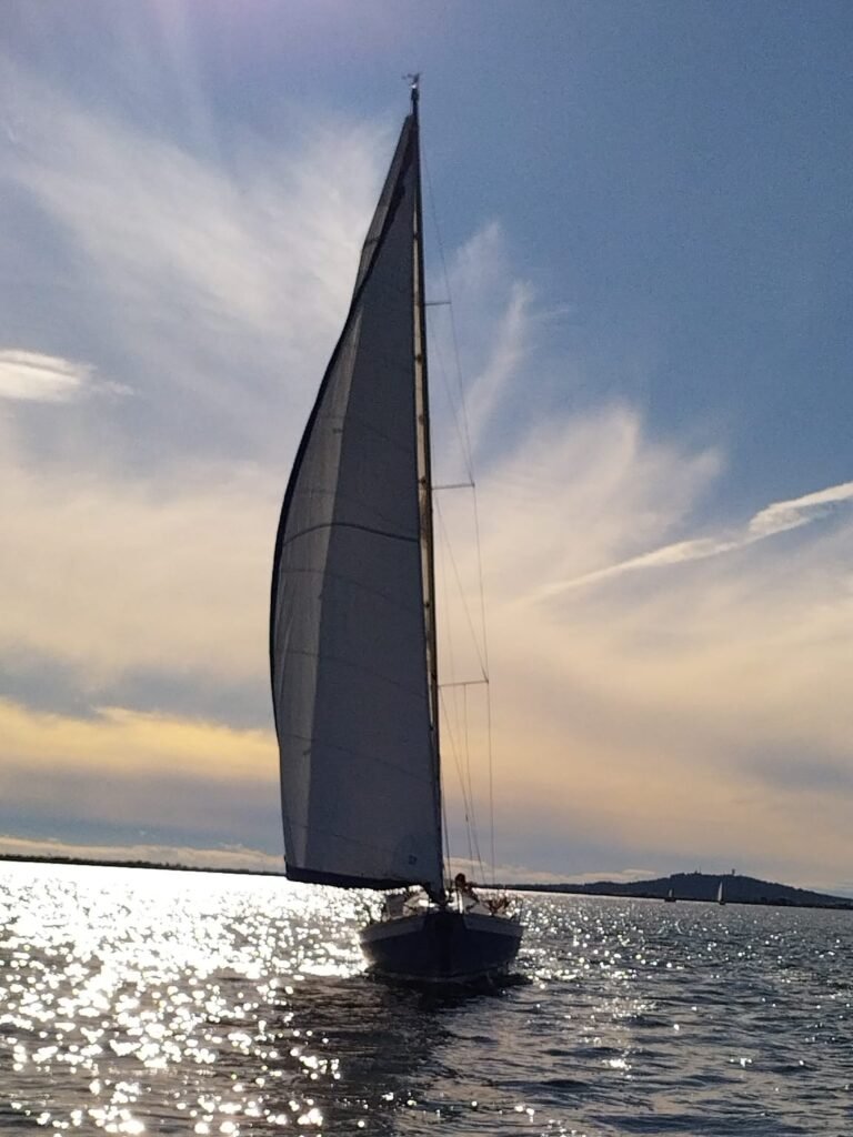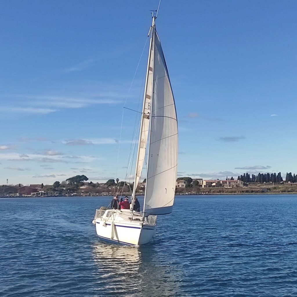 Très belle journée, l’Amicale bien représentée sur l’eau aujourd’hui. Succession de virements et empannages. La fin de journée arrive et le vent tombe il est temps de rentrer.