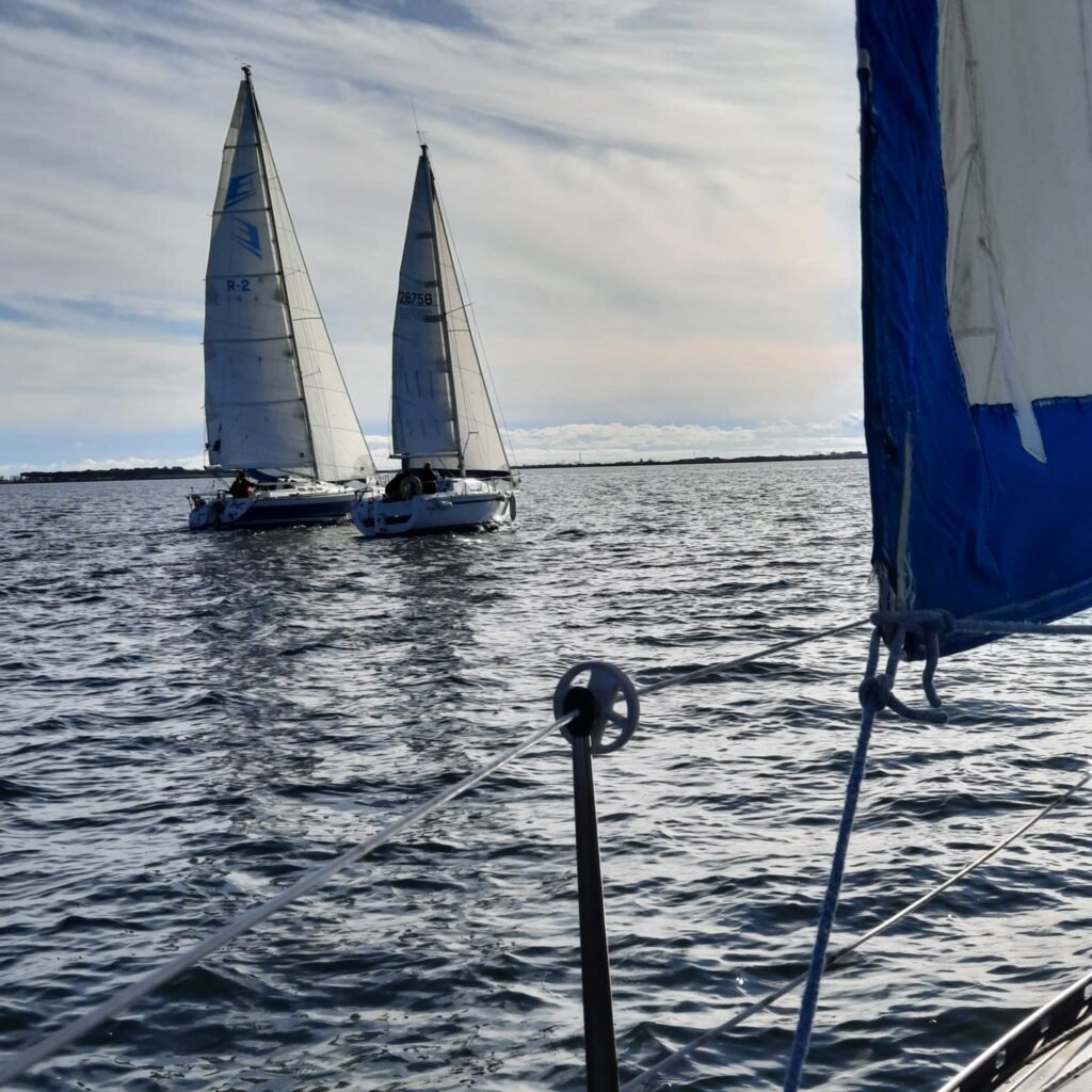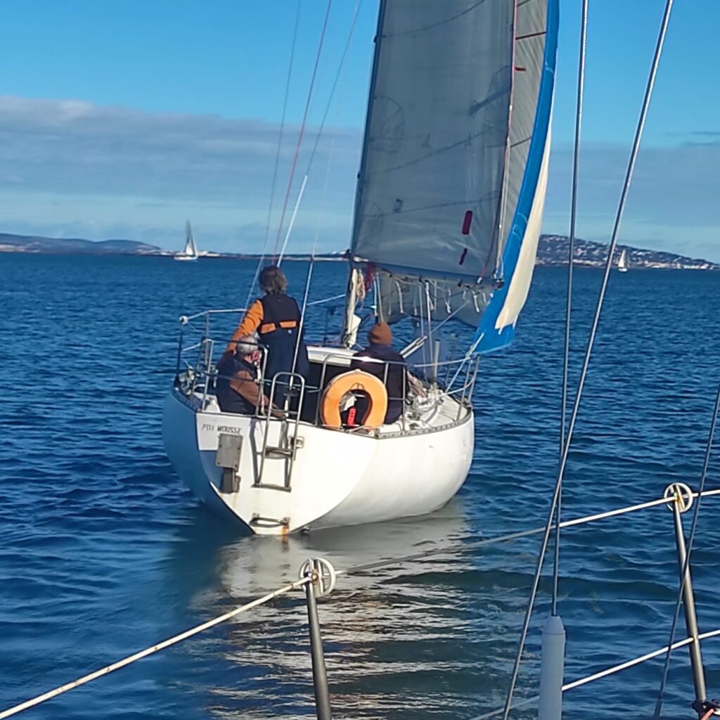 Maeva, Thicar, P’tit Mousse, Aloha3 et Azur profitent de ces conditions quasi estivales pour assurer un ballet qui fera le bonheur des équipages comme des solitaires! La vie est belle, merci à l’amicale Naviguons Ensemble pour son dynamisme.