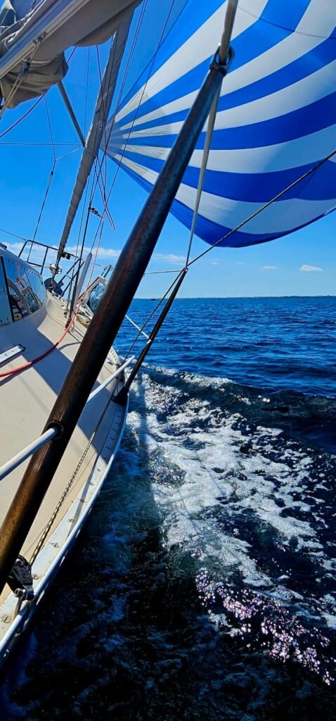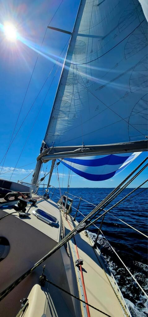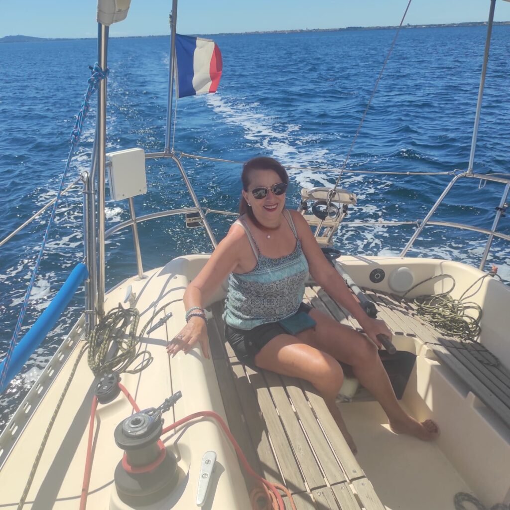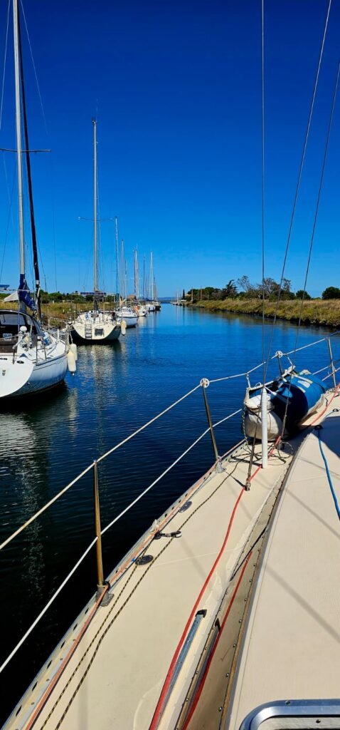 13h30 Thicar largue les amarres. Direction Sète, allure bon plein et préparation du spi. Il est temps de virer et d’envoyer le spi l’allure est un peu serré mais l’équipière du jour gère plutôt bien. Nous croisons Azur mais pour nous il est temps d’affaler. Retour au canal et un petit verre que nous avons bien mérité clôture cette belle journée.