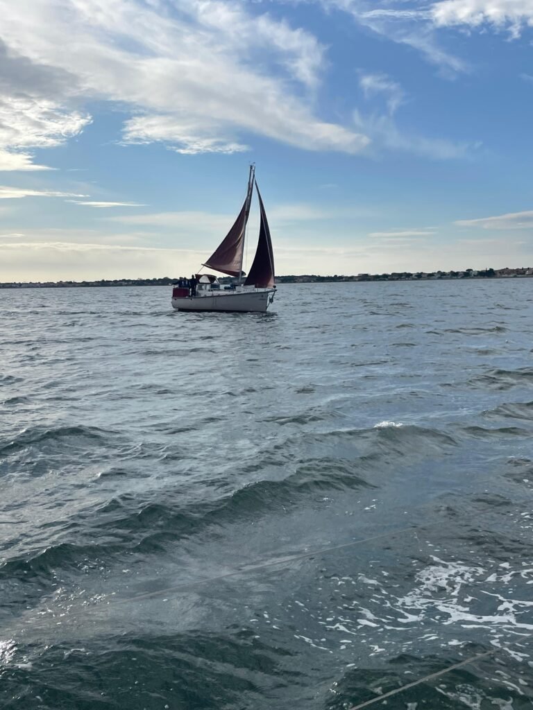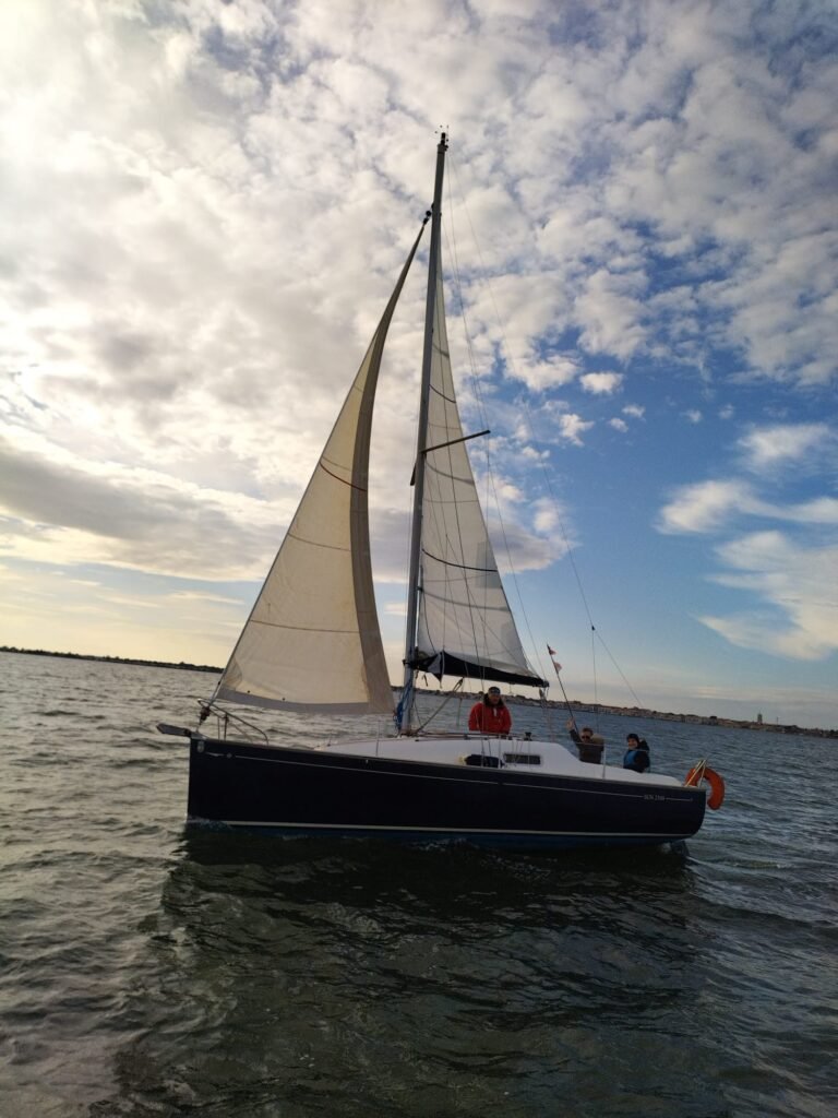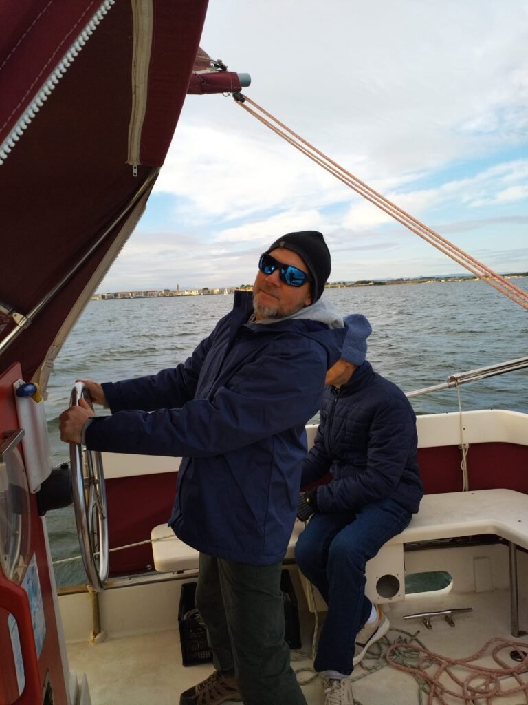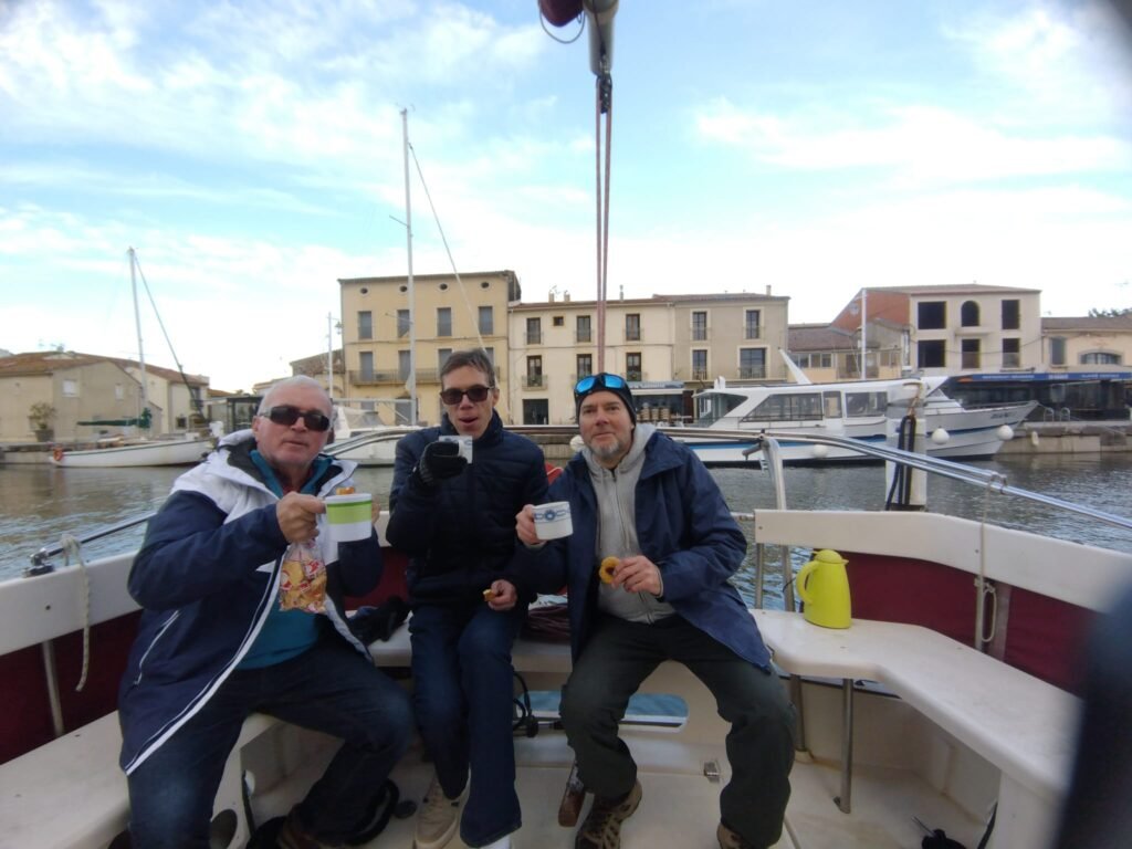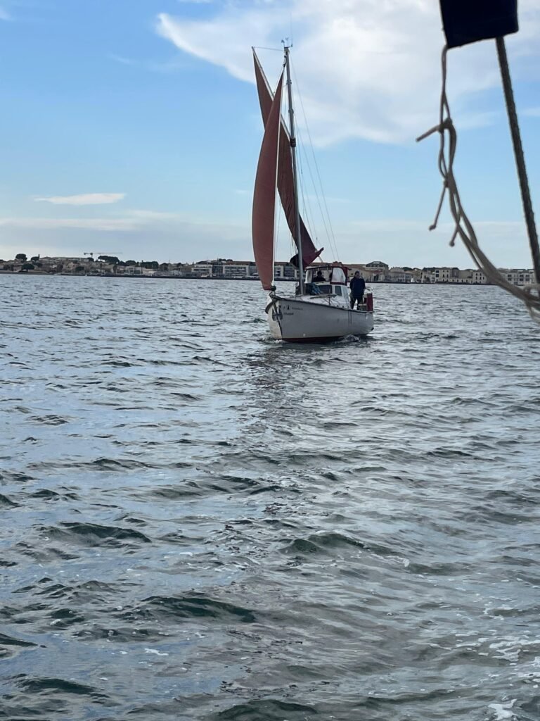 Vent d’ENE 10 à 15 nds molissant en fin d’après-midi. Yémanjà de sortie hivernale avec un équipage d’outre-manche, rejoignons Ithaque déjà sur le bassin. Il faut dire qu’il a piétiné plusieurs mois avant d’avoir son nouveau mât, c’est chose faite, il a fière allure aujourd’hui. Pour nous, destination Mèze que nous n’atteindrons pas malgré plusieurs virements de bords. Retour en vent arrière voiles en ciseaux pour le grand bonheur de l’équipage. Ils reviendront c’est sûr… sous des températures plus clémentes.