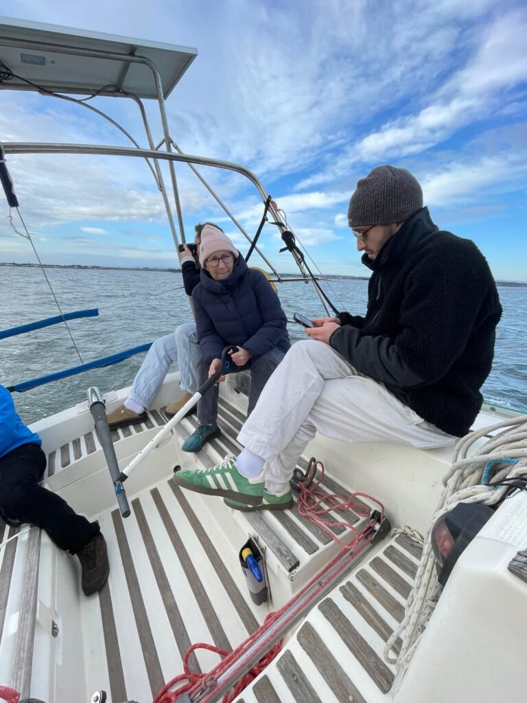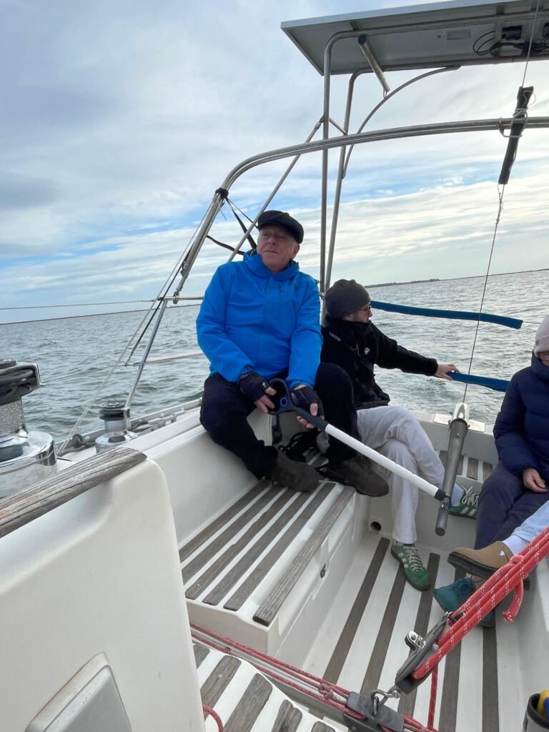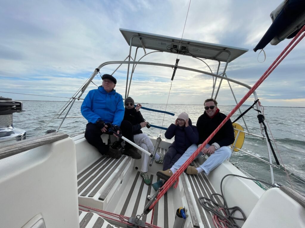 Sortie d’Ithaque après cinq mois au port. Essai grand voile et génois. Une horloge Suisse. Sommes obligés de faire pas mal de manœuvres pour le plaisir de Laurent, un nouvel adhérent et Jean Nicolas, un vieux loup de mer🤣. Croisons Yémanjà et Tritonic un sun 2500. De retour au port, après le rangement du matériel, un chocolat chaud, des bredeles (petits gâteaux de Noël ) et un dernier selfie 🤳.