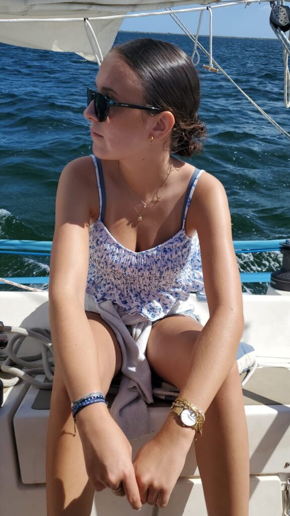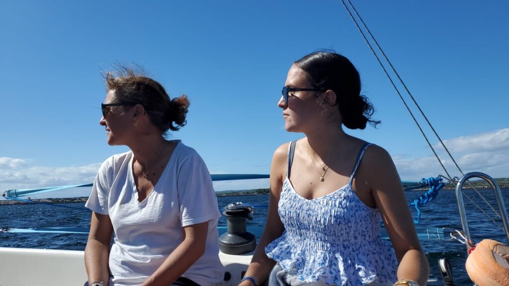 L’équipage de Lady Marie voilier sympathisant était invité à bord d’Azur pour une super nav et 10/21 nds de NW..Et oui Audrey navigue avec nous depuis 2009. Corse et de nombreuses croisières sur Pollux puis Zephir et ce jour à la barre d’Azur 16 ans passés !