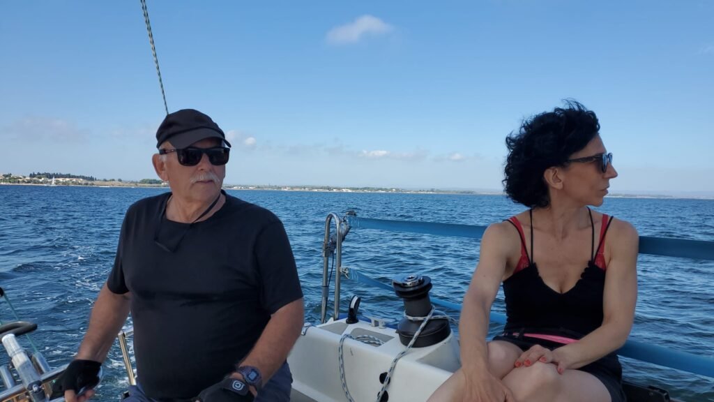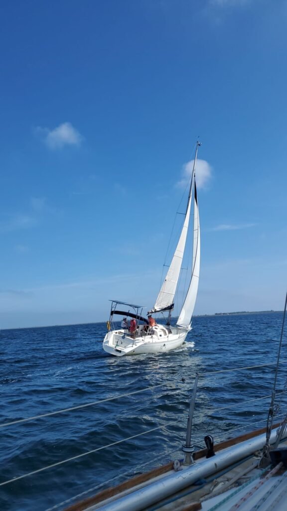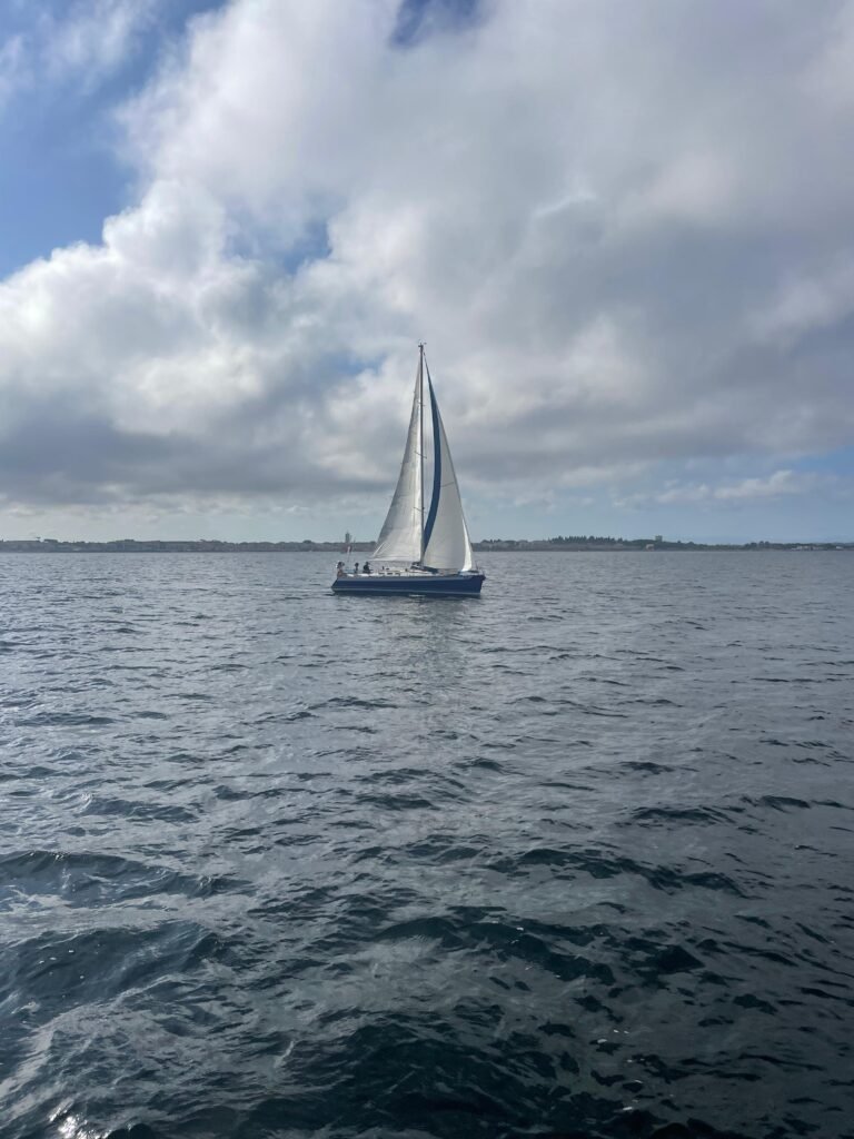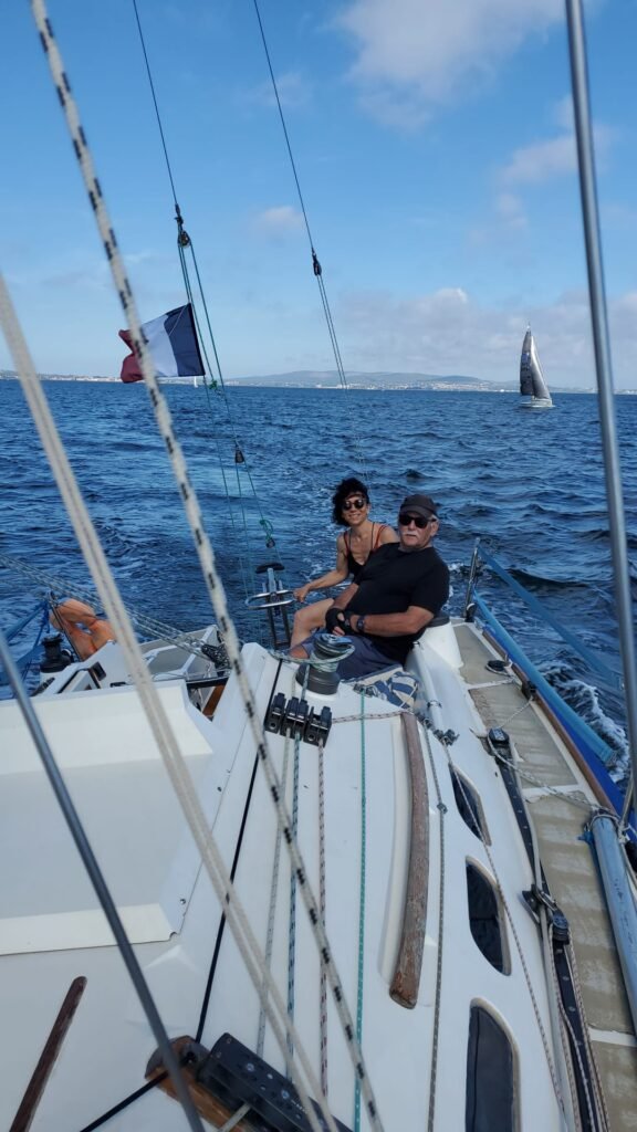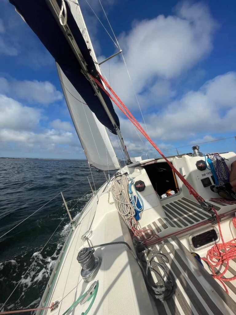 Le rêve grandeur nature avec une brise ESE de 8,7nds à 14nds l’équipage familial sur Azur gérera à belle allure son bord vers Sète pour un retour par le travers à 7nds avant de jouer à faire quelques bords sur le plan d’eau de Marseillan. Peu de monde sur l’eau mais Yémanjà et Jacnofil sont là sans oublier El Delphin le plus rapide….