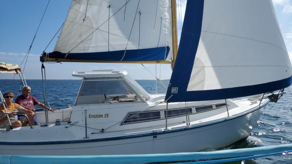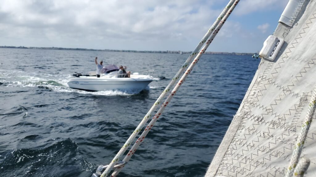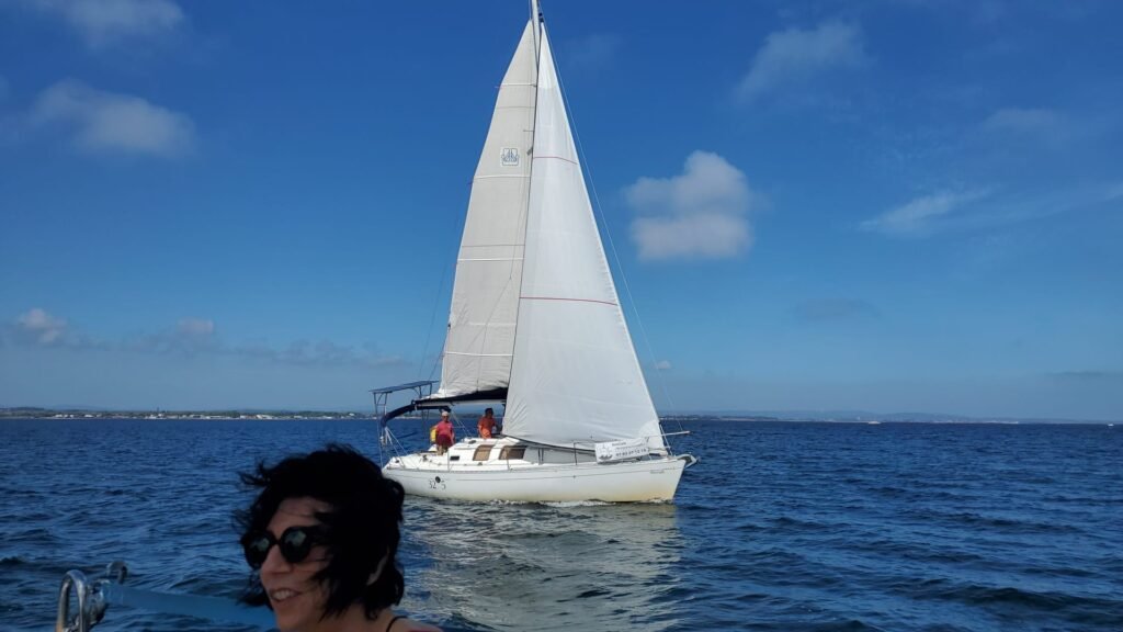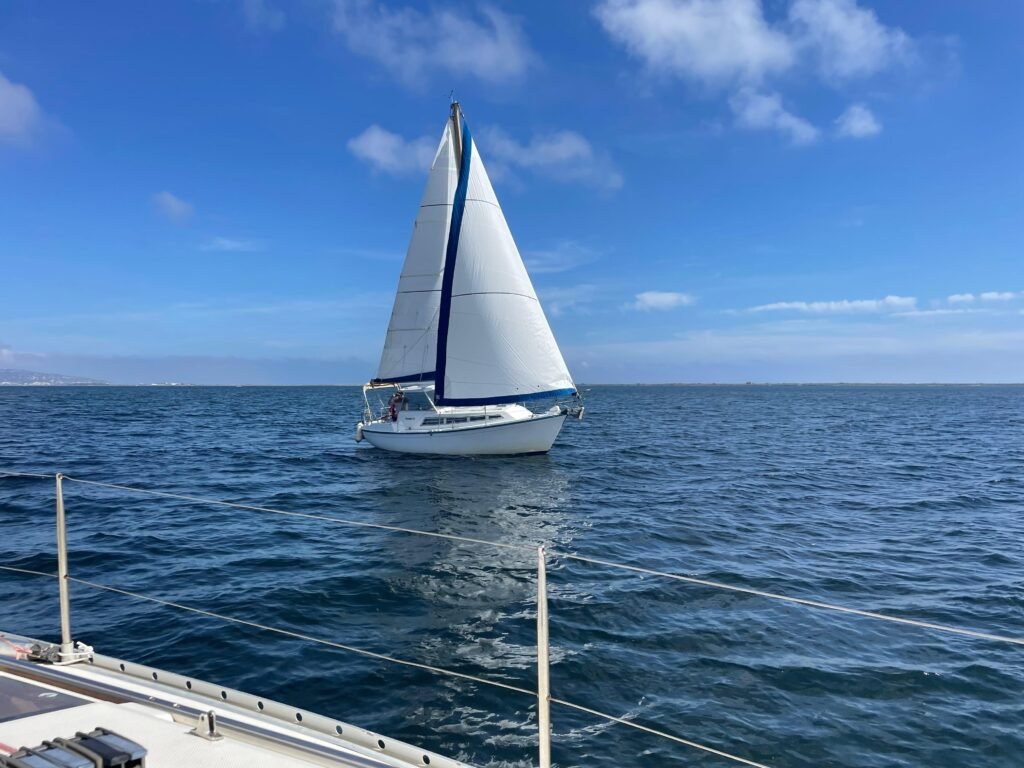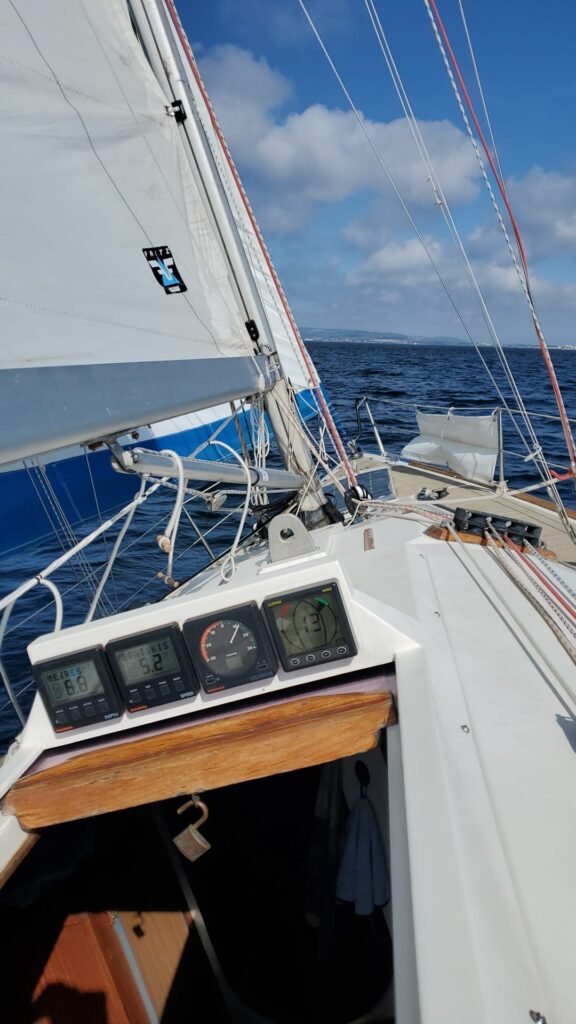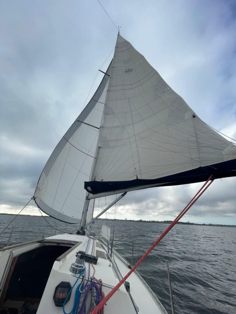Le rêve grandeur nature avec une brise ESE de 8,7nds à 14nds l’équipage familial sur Azur gérera à belle allure son bord vers Sète pour un retour par le travers à 7nds avant de jouer à faire quelques bords sur le plan d’eau de Marseillan. Peu de monde sur l’eau mais Yémanjà et Jacnofil sont là sans oublier El Delphin le plus rapide….