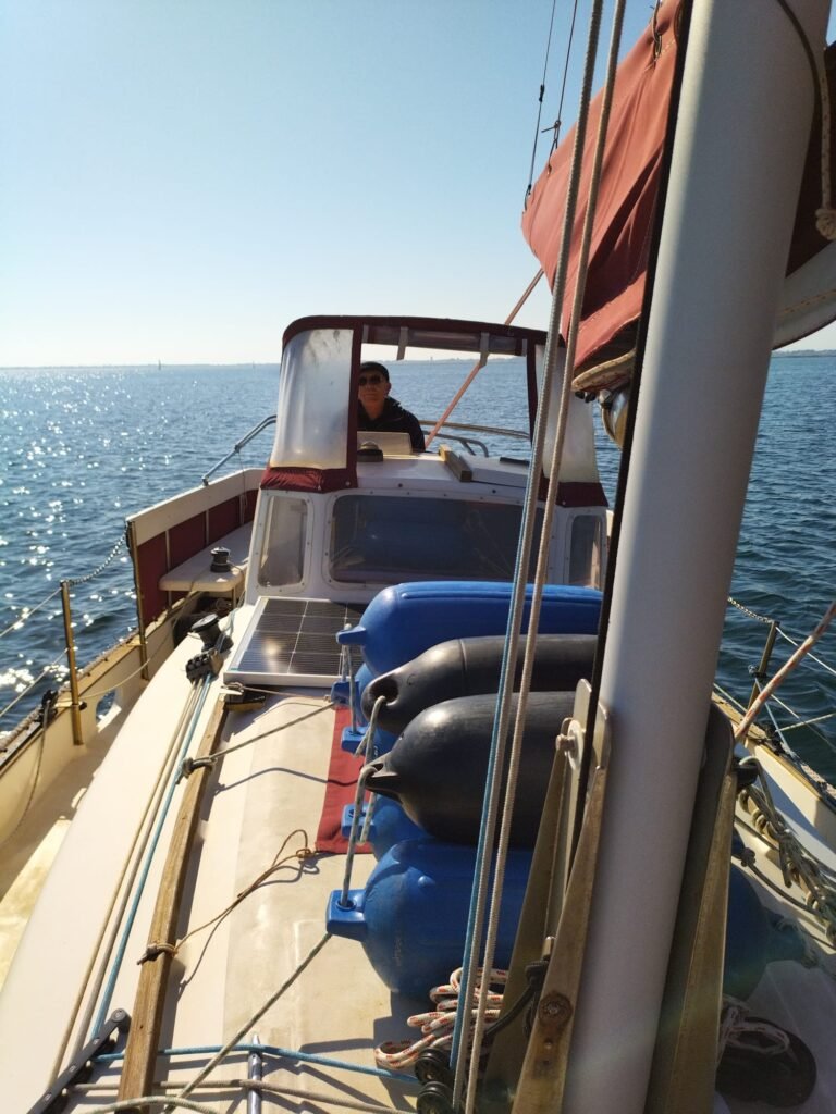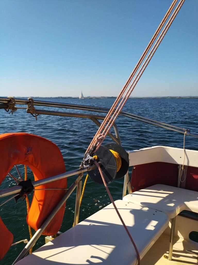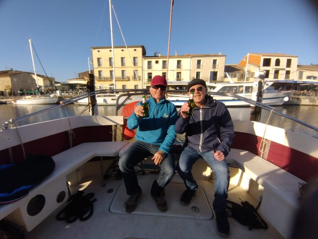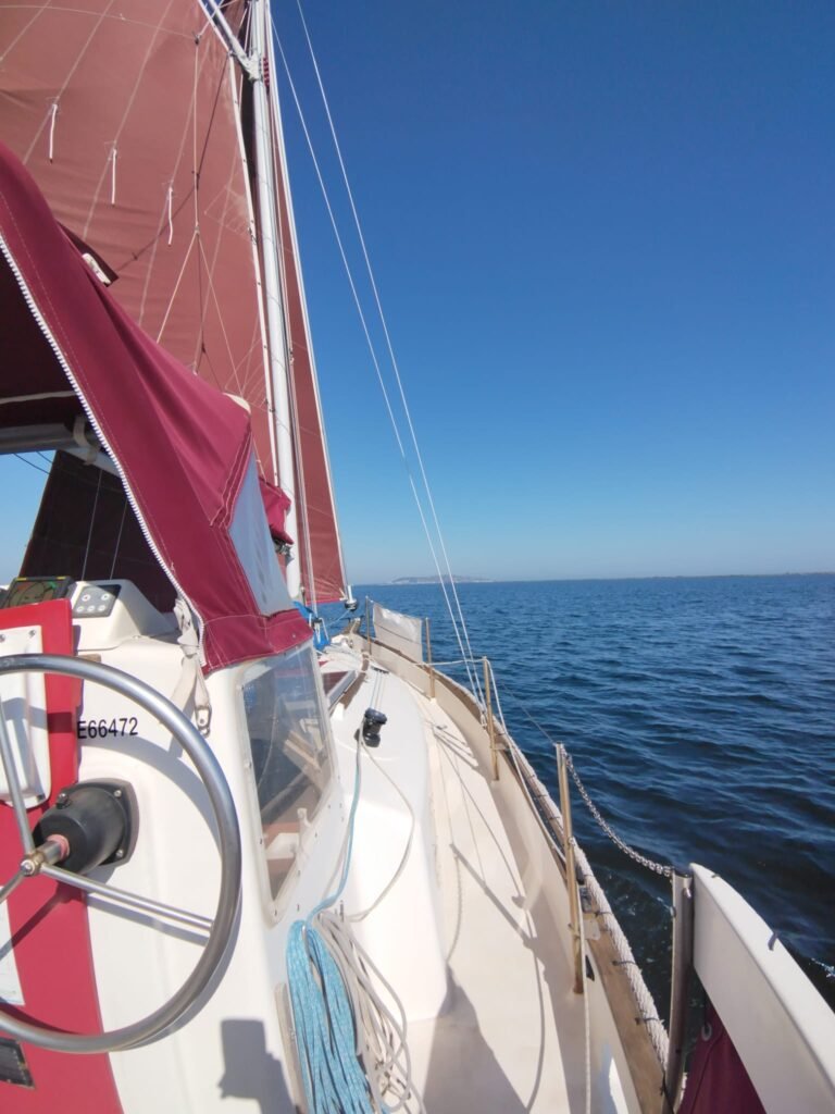 Belle sortie pour Ithaque. Vent du Est/Sud/Est. Un grand soleil ☀️ sommes seuls au monde. Un virement au niveau du Château de Villeroy. Puis allons jusqu’au phare des Onglous pour revenir au port voile en ciseaux. Visite du port et un dernier selfie 🤳 en buvant une boisson à base de houblon, de malt et d’eau pure.