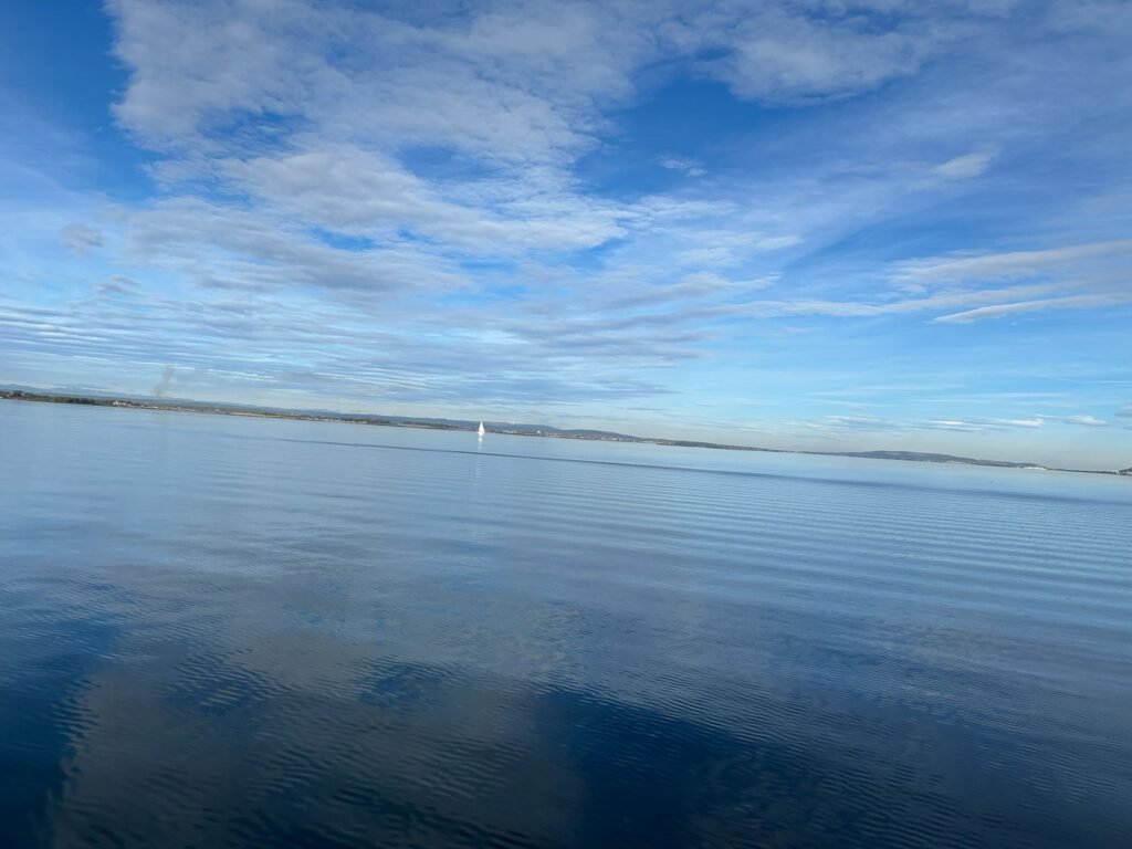 Mais où est donc passé Éole 😓 certainement fatigué après toutes ces journées ventées. Heureusement mon petit lombardini nous permettra d’aller jusqu’au toc observer les jolies nacres avec une très limpide. Pas de vent une seule solution manger et boire 🤣. Malgré tout l’équipage des habitués, ont apprécié de prendre un bol d’air et profitez des couleurs de la lagune.