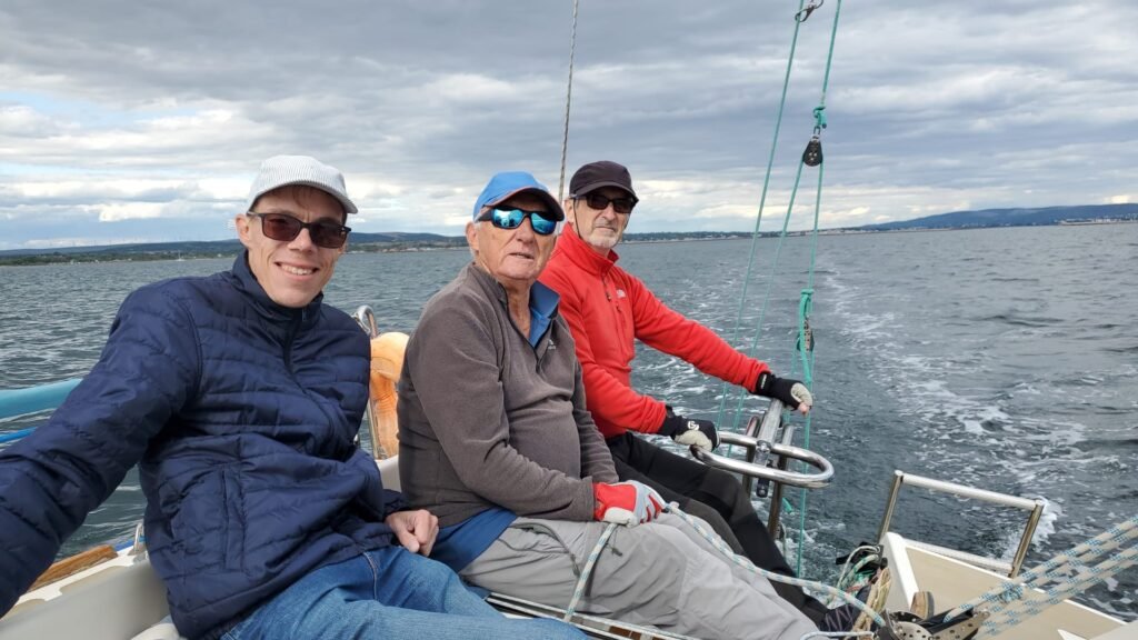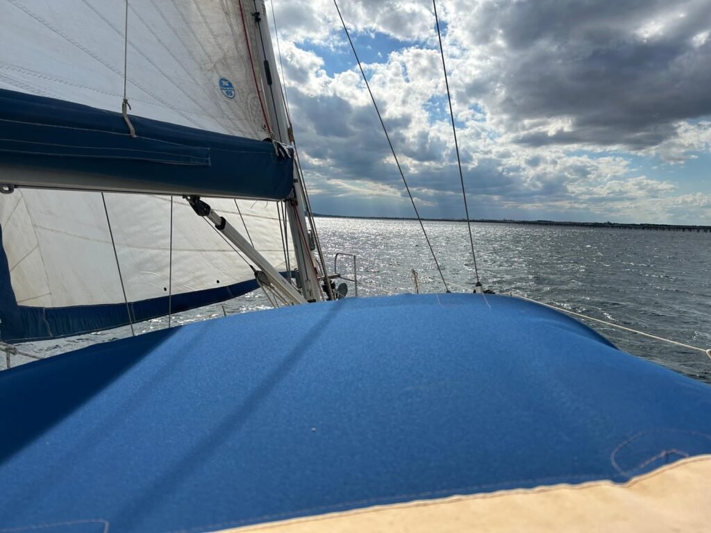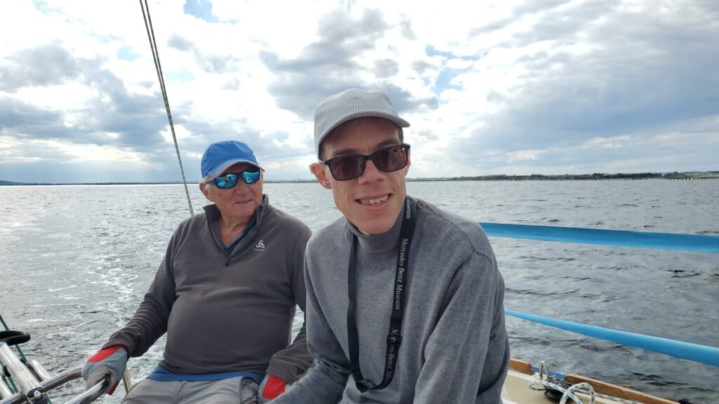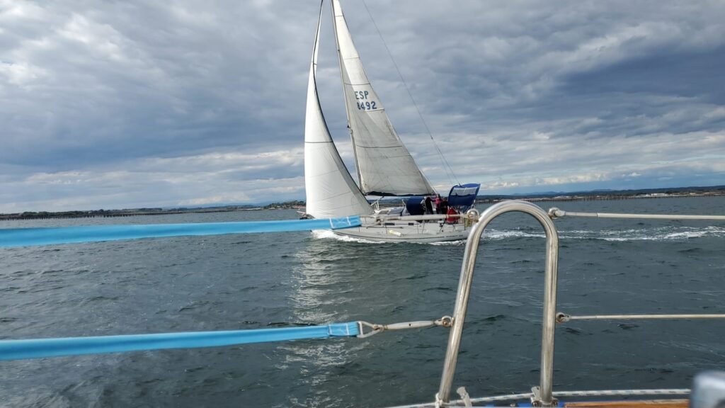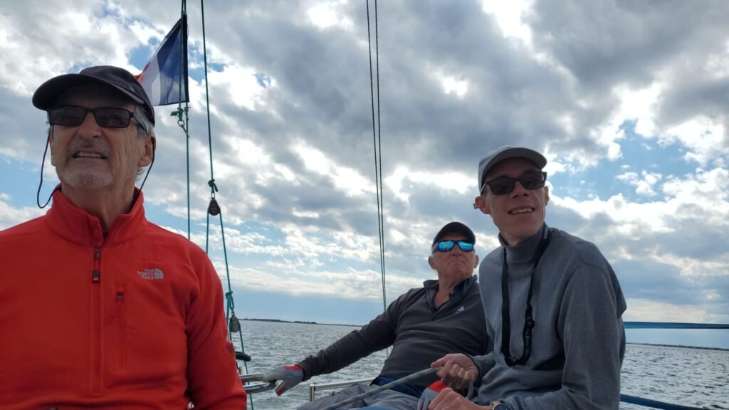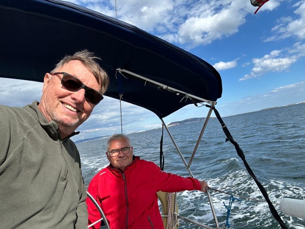 Une sortie avec Azur sous le signe de vents très très variables en force et en direction ce qui fera le bonheur de l’équipage et principalement des barreurs, toujours en action ! De nombreux virements et un retour des parcs de Bouzigues avec un petit S excellent de 14nds. Contact vhf avec Thicar et croisement avec Aloha3.