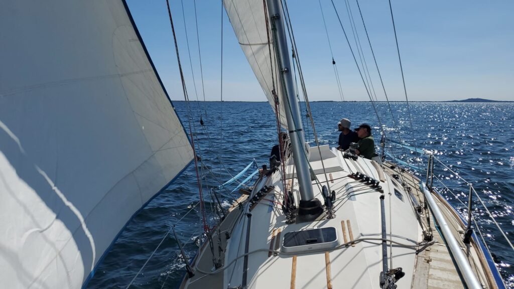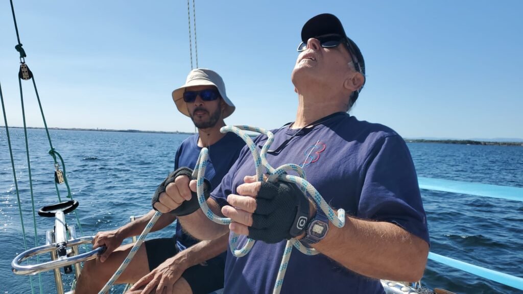 Une sortie marquée par les caprices du vent, ces derniers ont fait la joie des équipiers sur Yémanjà. Une belle route vers Listel, rien de tel pour parfaire les techniques de barre ou pour observer la girouette en se demandant quand celle-ci va enfin se stabiliser. Patience ce sera à l’arrivée, amarré au ponton, autour d’une boisson fraîche !