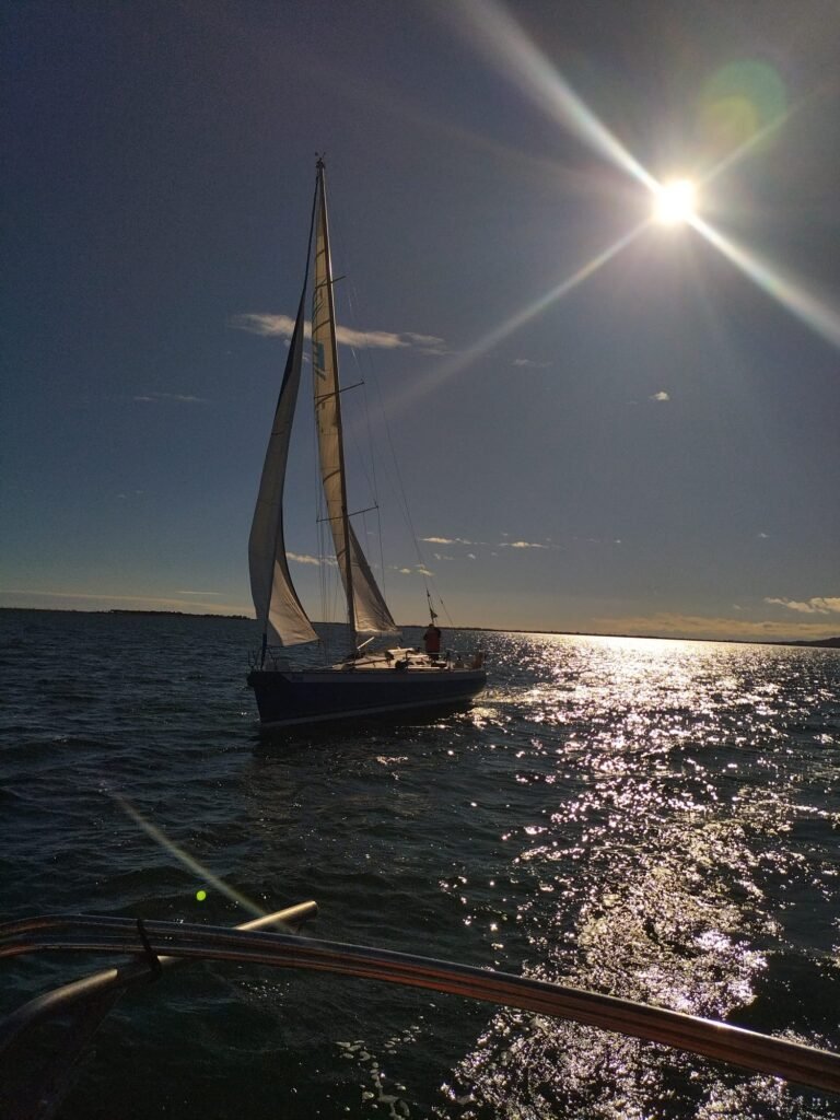 Après avoir essuyé quelques gouttes lors de la préparation des voiliers. Azur, P’tit Mousse et Ithaque larguent les amarres. Soudain un ciel bleu avec du soleil ☀️. Les trois unités côte à côte avec un vent du Nord jusqu’aux balises intermédiaires. Sur le retour le vent passe à l’ouest avant de mollir. Juste assez pour finir à la voile. Encore un bel après-midi d’hiver qui se termine en beauté.